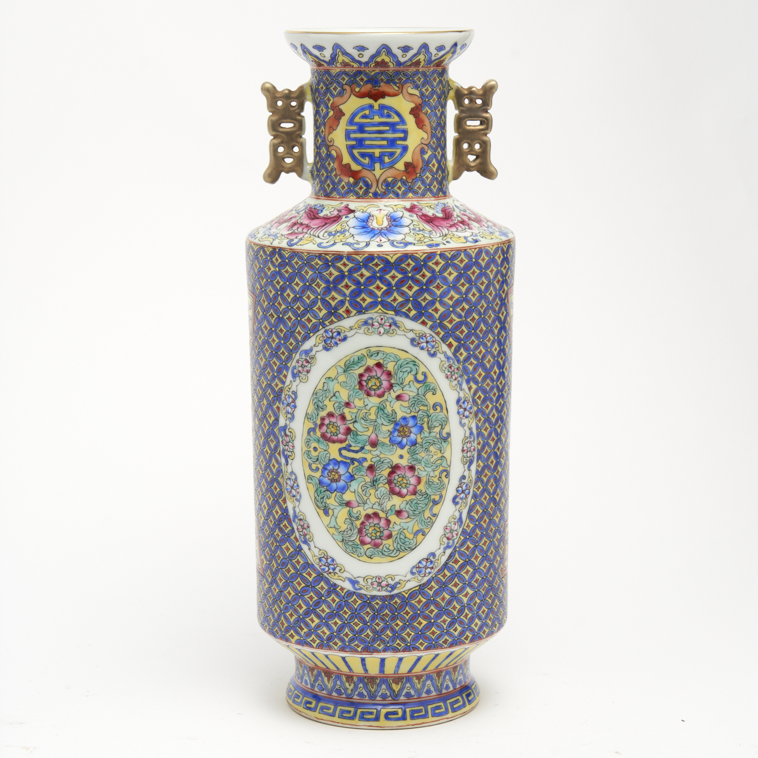 A CHINESE PORCELAIN VASE WITH RAISED FLORAL MOTIF, SIX-CHARACTER QIANLONG MARK TO THE BASE H.31CM