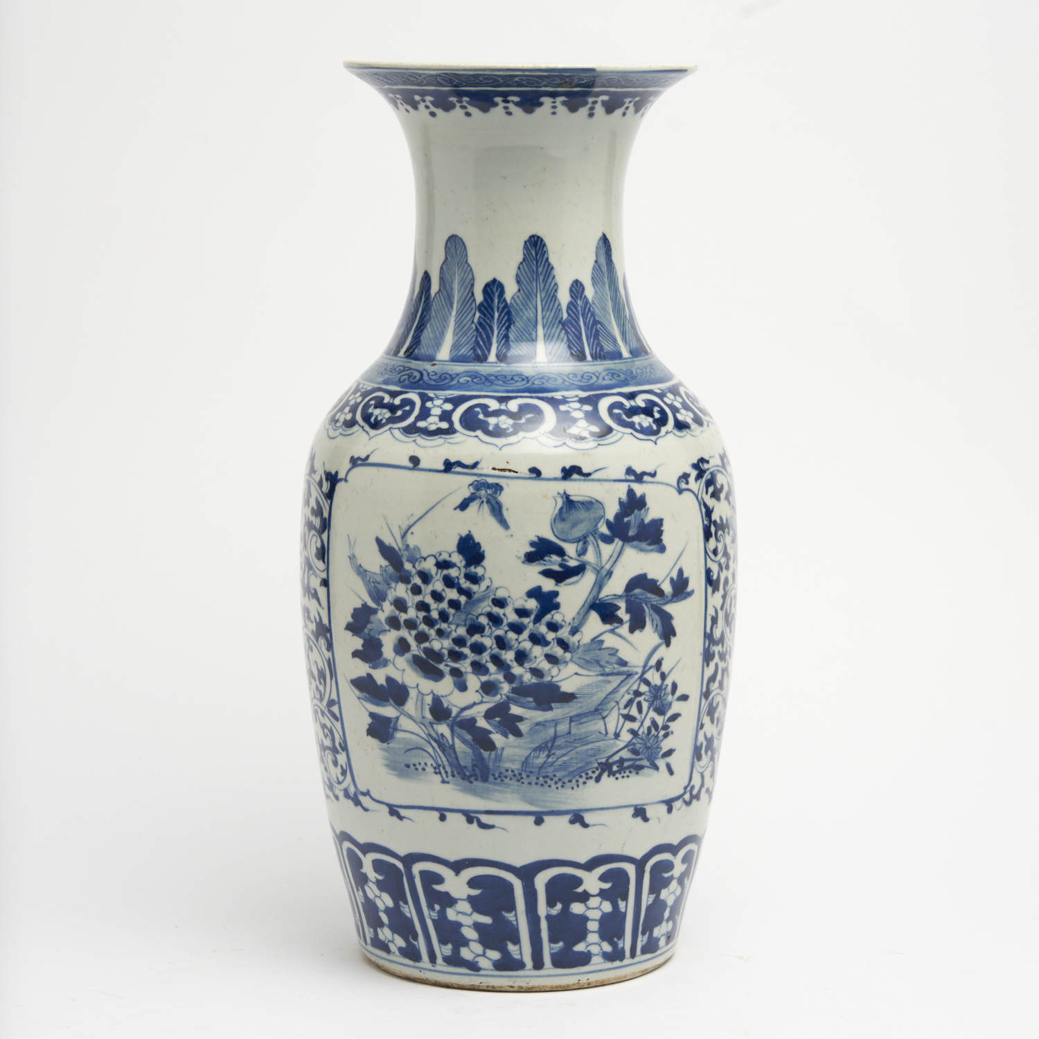 A CHINESE BLUE AND WHITE PORCELAIN VASE WITH FLORAL MOTIF, H.41CM
