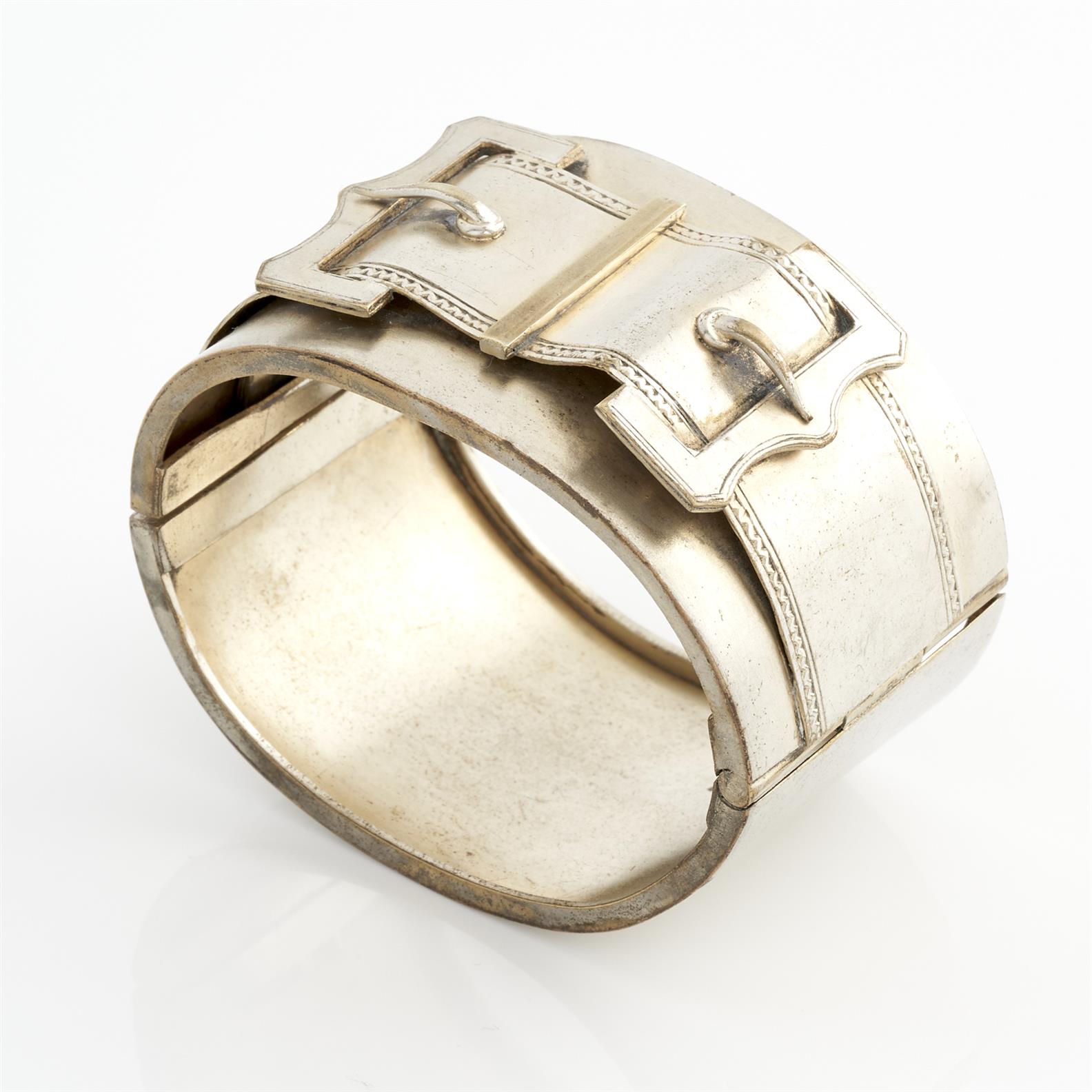 AN ANTIQUE BUCKLE CUFF BANGLE IN SILVER, INNER DIAMETER 58MM