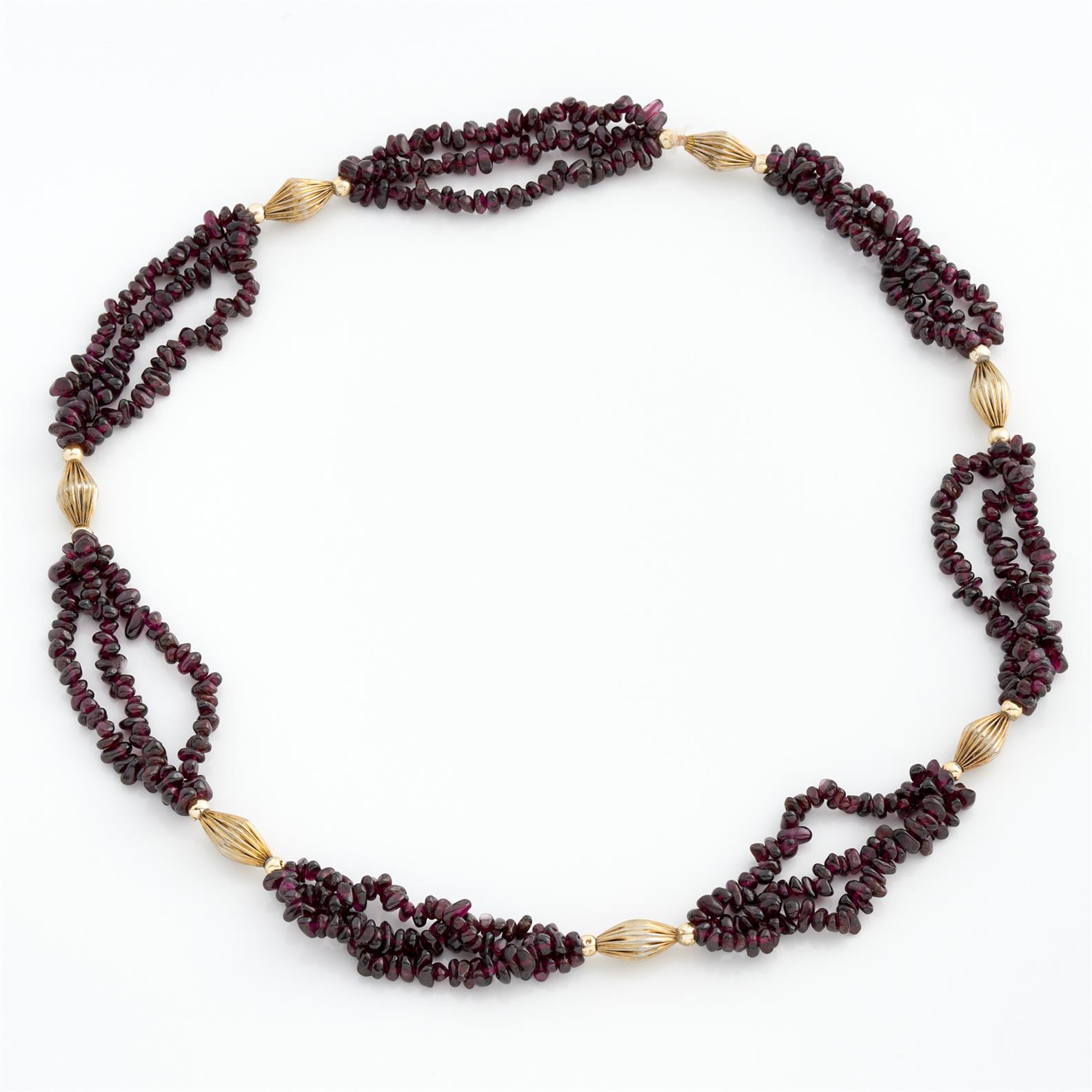 A GARNET AND SILVER GILT BEAD NECKLACE, 660MM