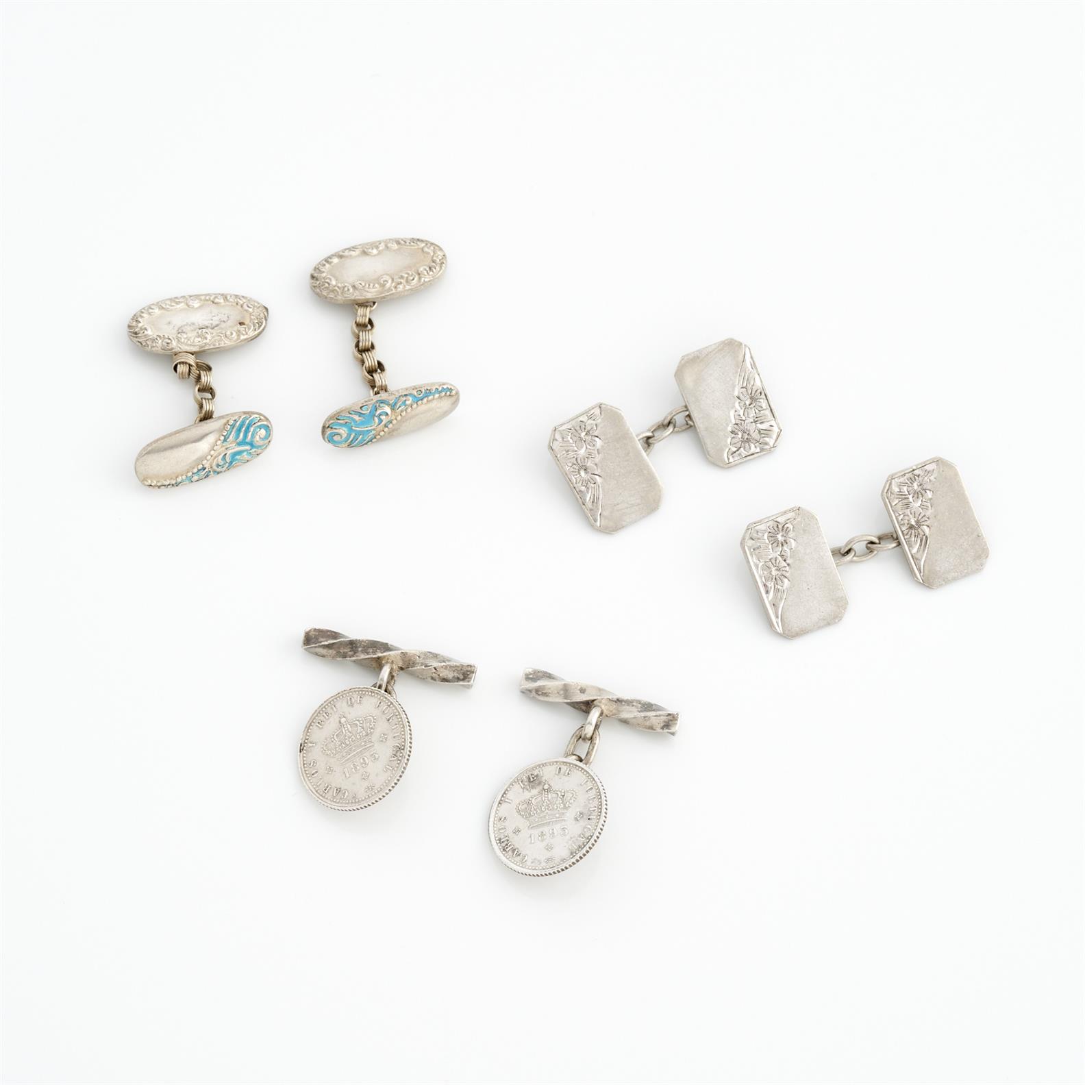 A COLLECTION OF THREE PAIRS OF CUFFLINKS IN SILVER