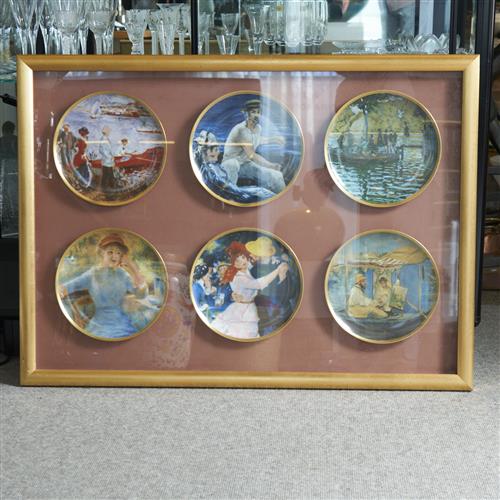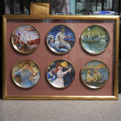 SIX IMPRESSIONIST COLLECTORS PLATES MOUNTED IN A GILDED DISPLAY FRAME, 76 X 104CM