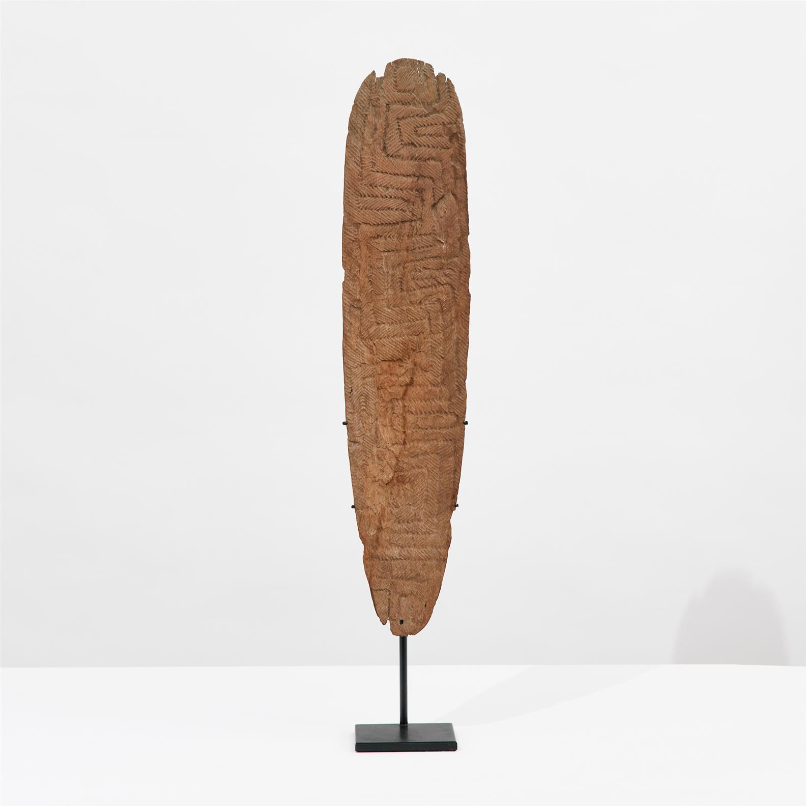 A BULL ROARER, PRE-1940, WITH INCISED INTERLOCKING KEY PATTERN SIMILAR TO THE LA GRANGE BAY SHIELDS