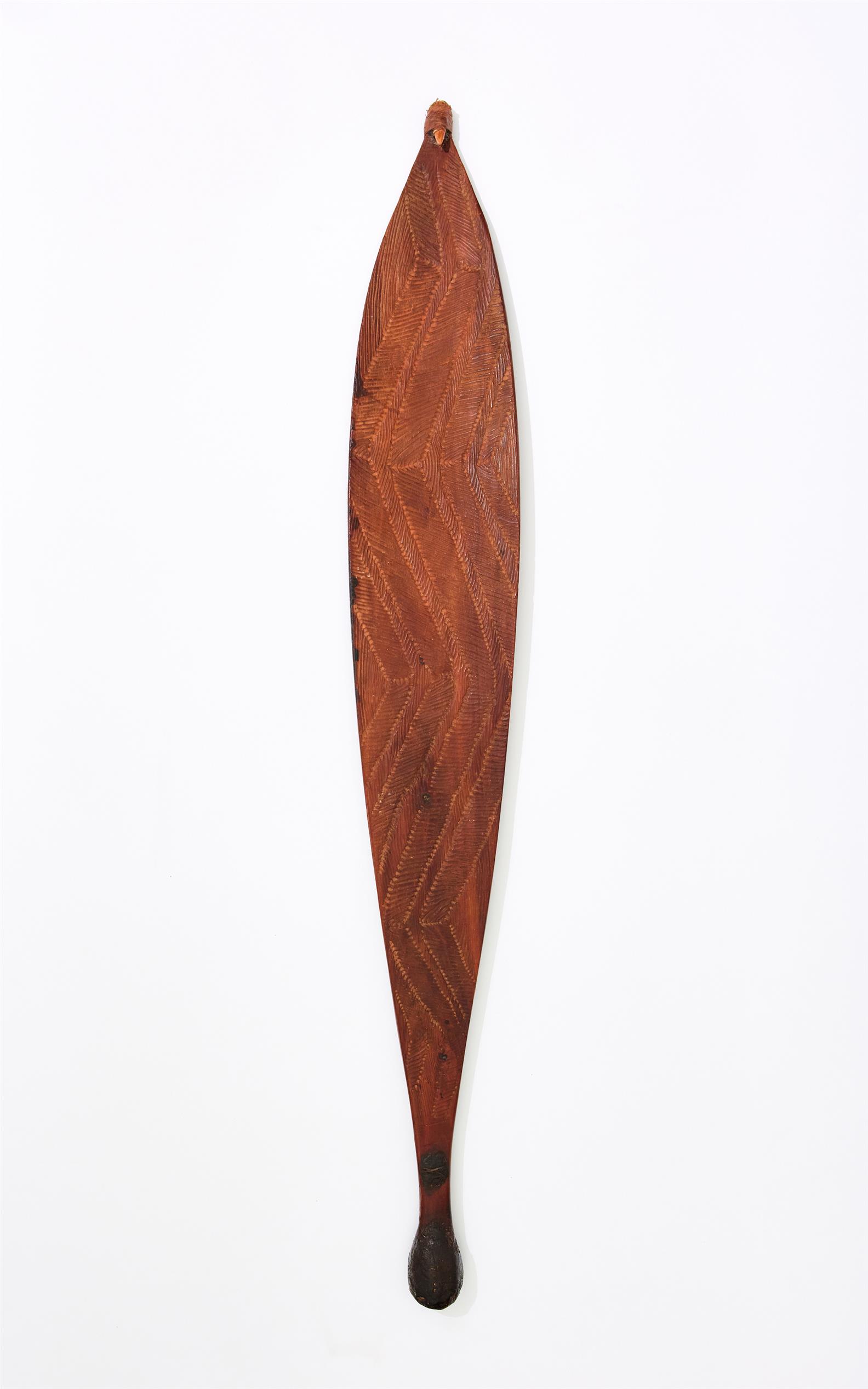 A MID-20TH CENTURY WESTERN DESERT WOMERA, FINELY INCISED WITH GEOMETRIC DECORATION TO FRONT