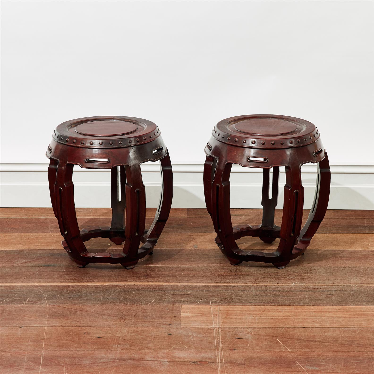 A PAIR OF CHINESE ROSEWOOD DRUM SEATS