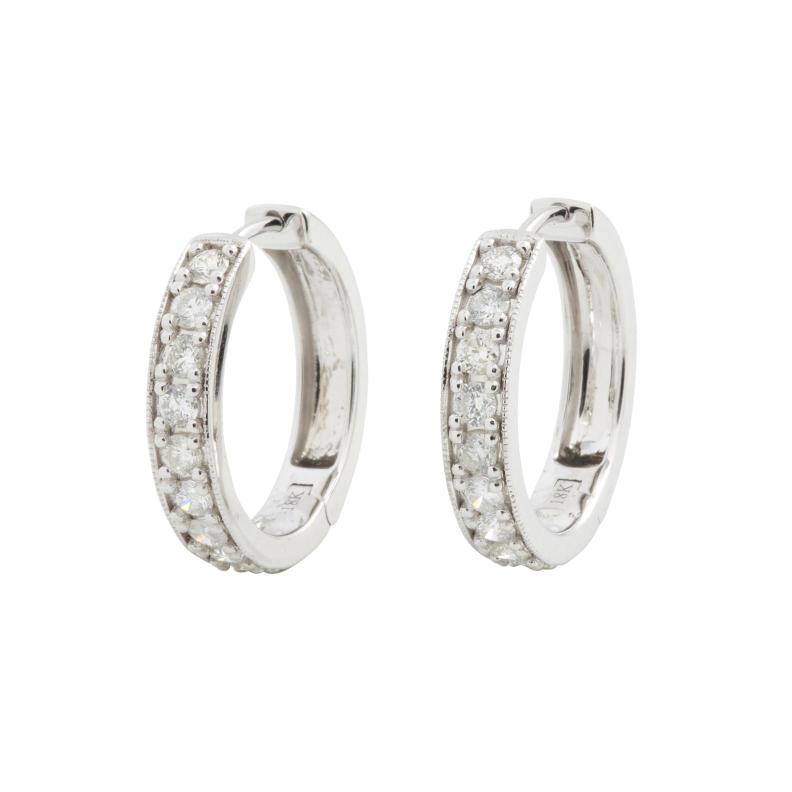A PAIR OF DIAMOND EARRINGS IN 18CT WHITE GOLD, THE OLD EUROPEAN CUT DIAMONDS TOTALLING 1.74CT, (H-I, SI) TO HOOK FITTINGS, 22MM, ACC...
