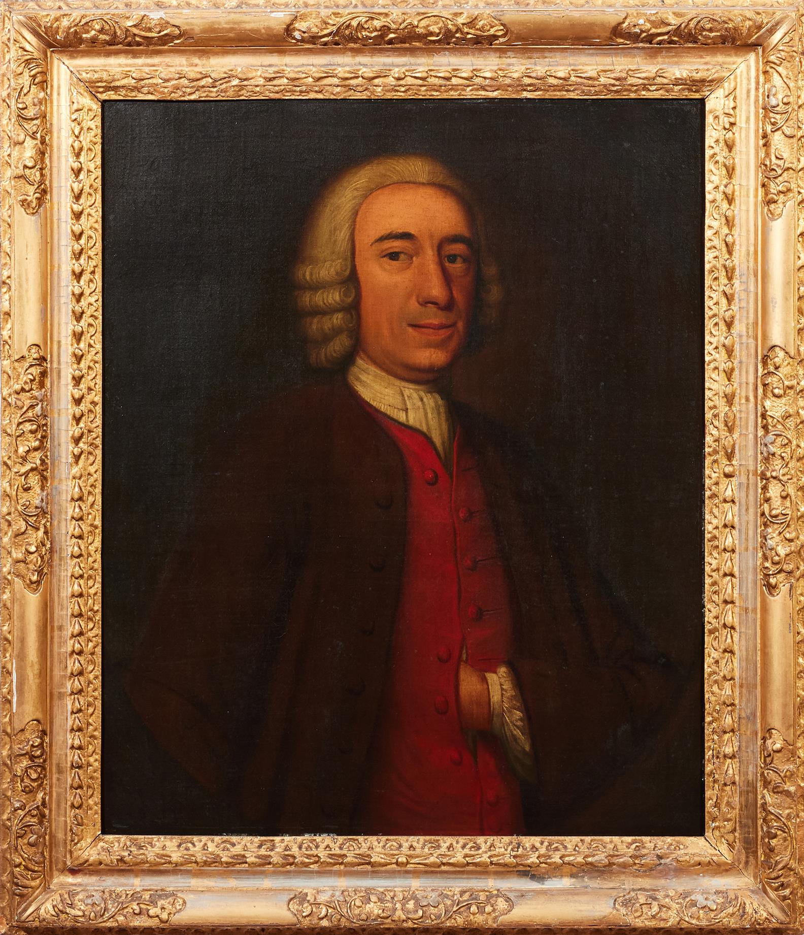 Portrait of a Gentleman in Red Waist Coat and Black Coat and Curled Wig