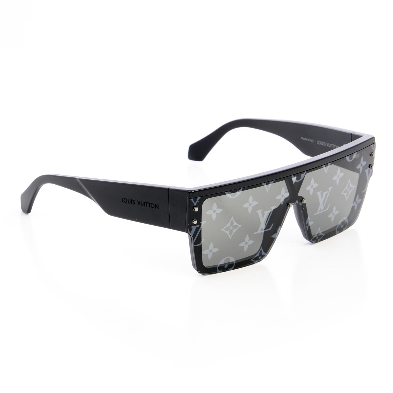Styled in black composite, featuring a LV monogram pattern at the lenses.