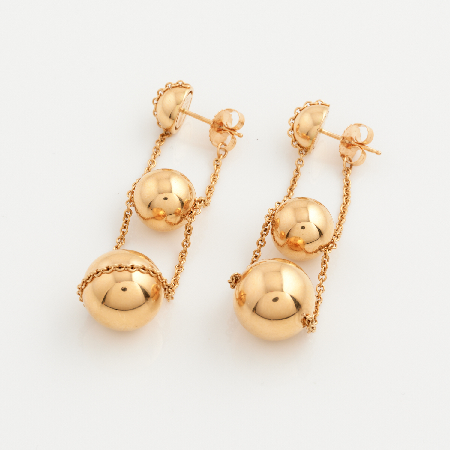TIFFANY & CO. A PAIR OF HARDWARE TRIPLE DROP EARRINGS IN 18CT ROSE GOLD, TO POST AND BUTTERFLY FITTINGS, 65MM, 11.4GMS