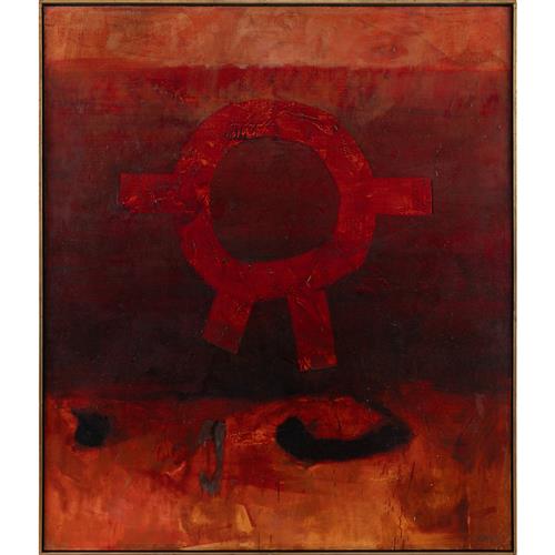 JOHN OLSEN (1928-2023) Who Said They Might Assume These Blossoms 1969 oil on board 101 x 75.5cm (105 x 79.5cm framed)