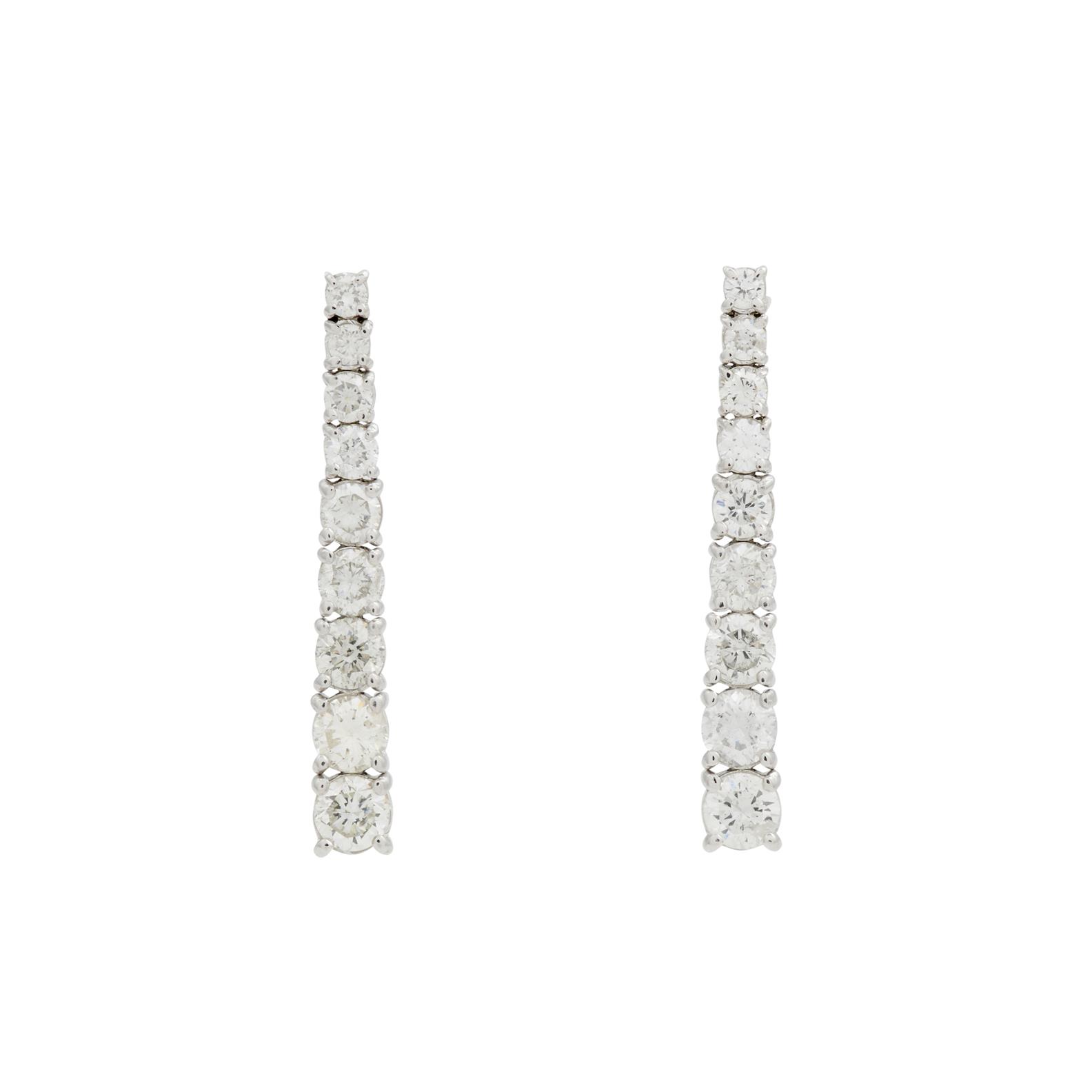 Each earring claw-set with nine graduating in size round brilliant cut diamonds together weighing approximately weighing 1.70 carats, to post and butterfly fittings, length 32mm, gross weight approxiamtely 4.20 grams.