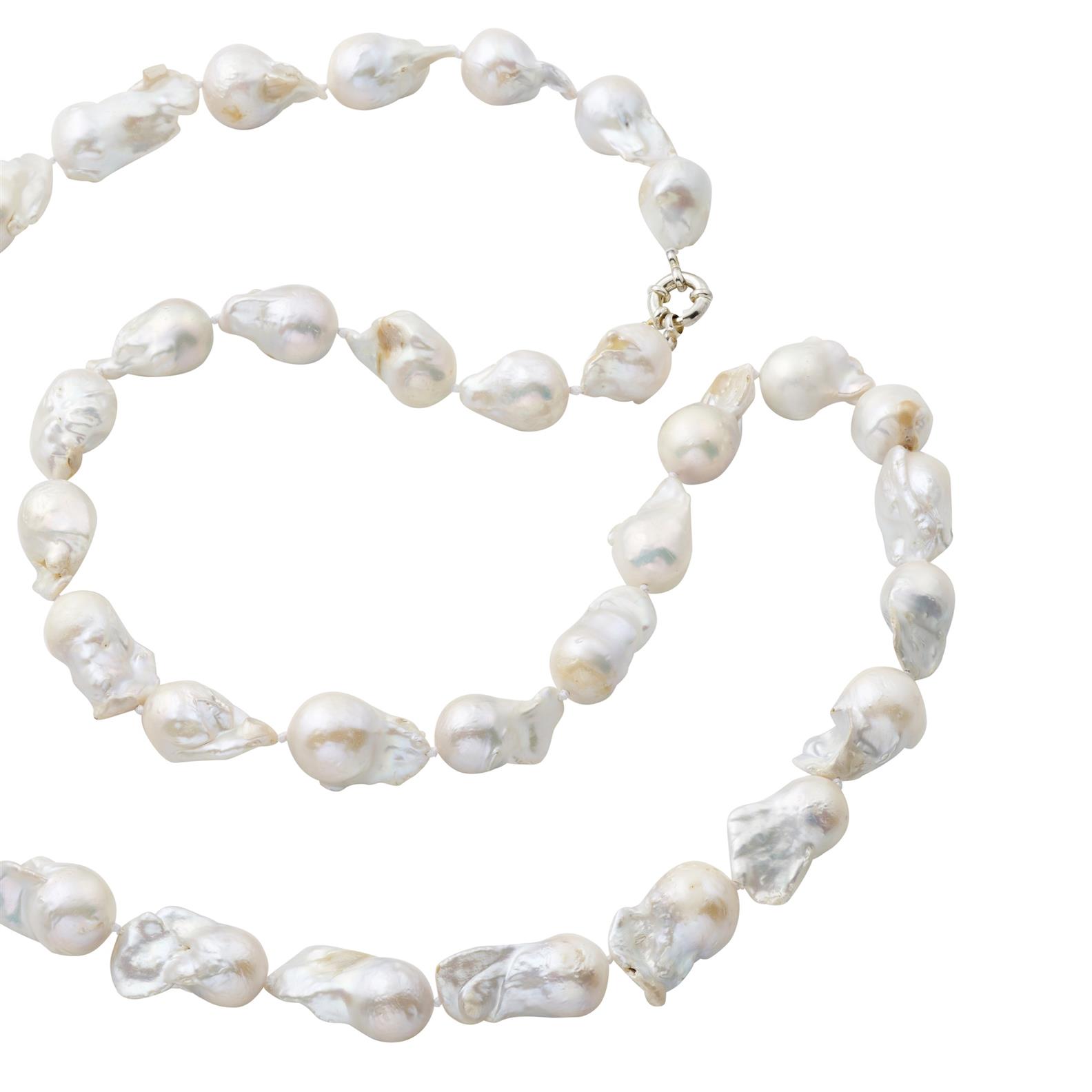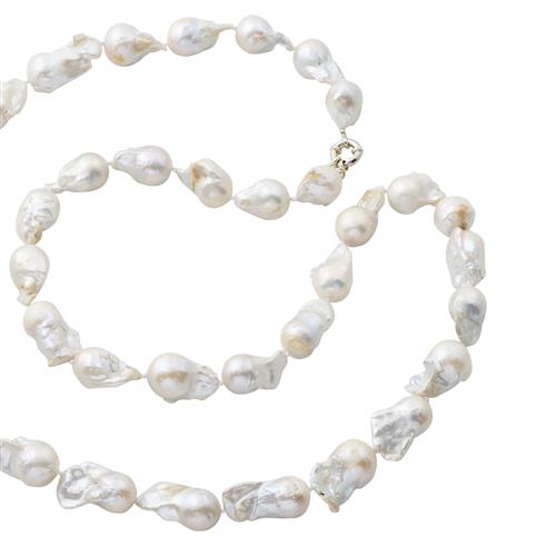 In our opinion the cultured pearls of commercial quality display silvery/cream bodycolour with a variation of green, yellow and rose overtones, with naturally occurring pitting, indents, and signs of circular growth to the nacre. Some areas of minor loss of nacre The clasp displays minor scratches.