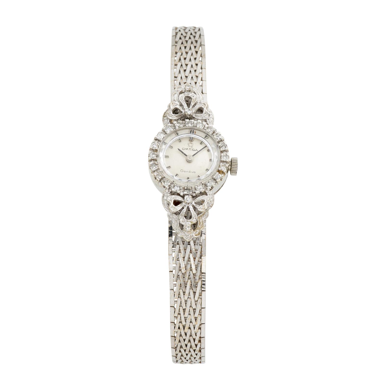OMEGA A LADY'S 14CT WHITE GOLD AND DIAMOND-SET BRACELET WATCH CIRCA 1955