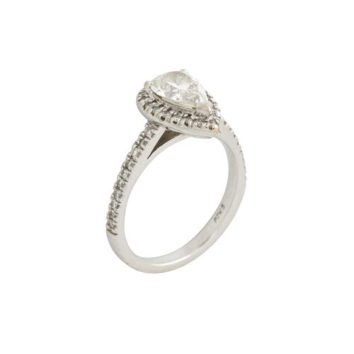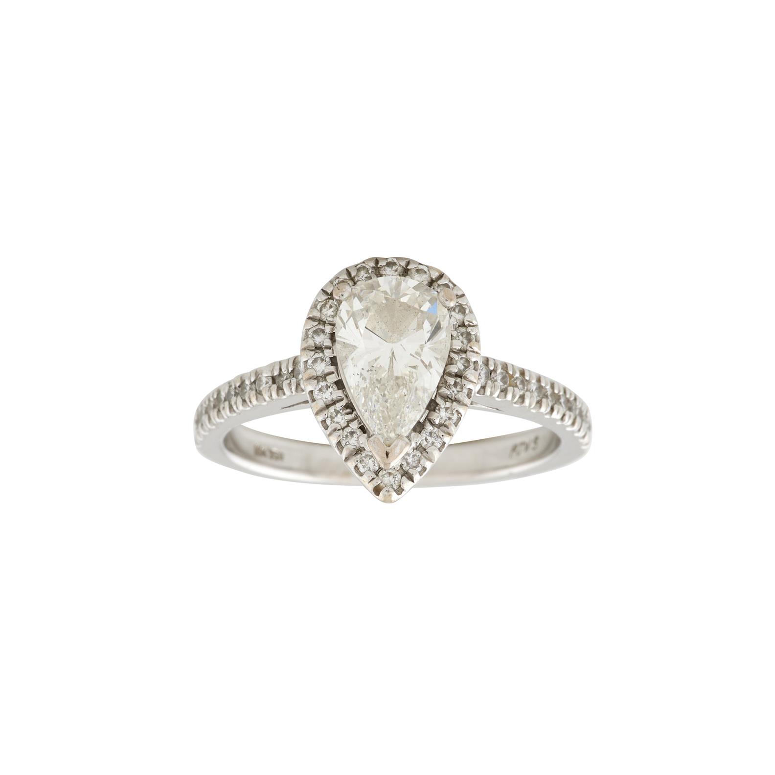 A PEAR CUT DIAMOND RING, ACCOMPANIED BY GIA CERTIFICATE AND VALUATION