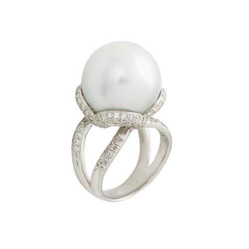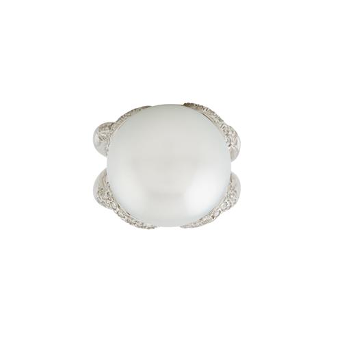 18CT WHITE GOLD AND SOUTH SEA PEARL AND DIAMOND RING