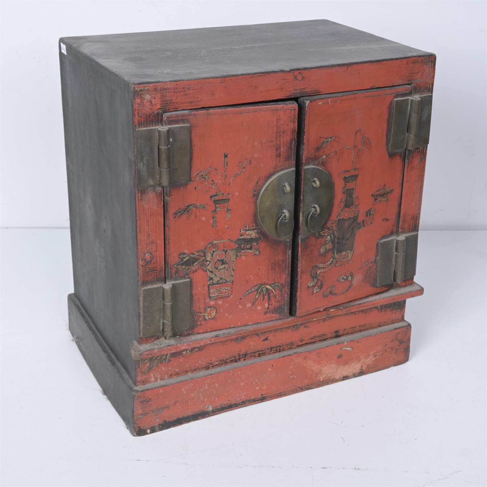 A LACQUERED TABLETOP SHRINE (45H X 43W X 29D CM)