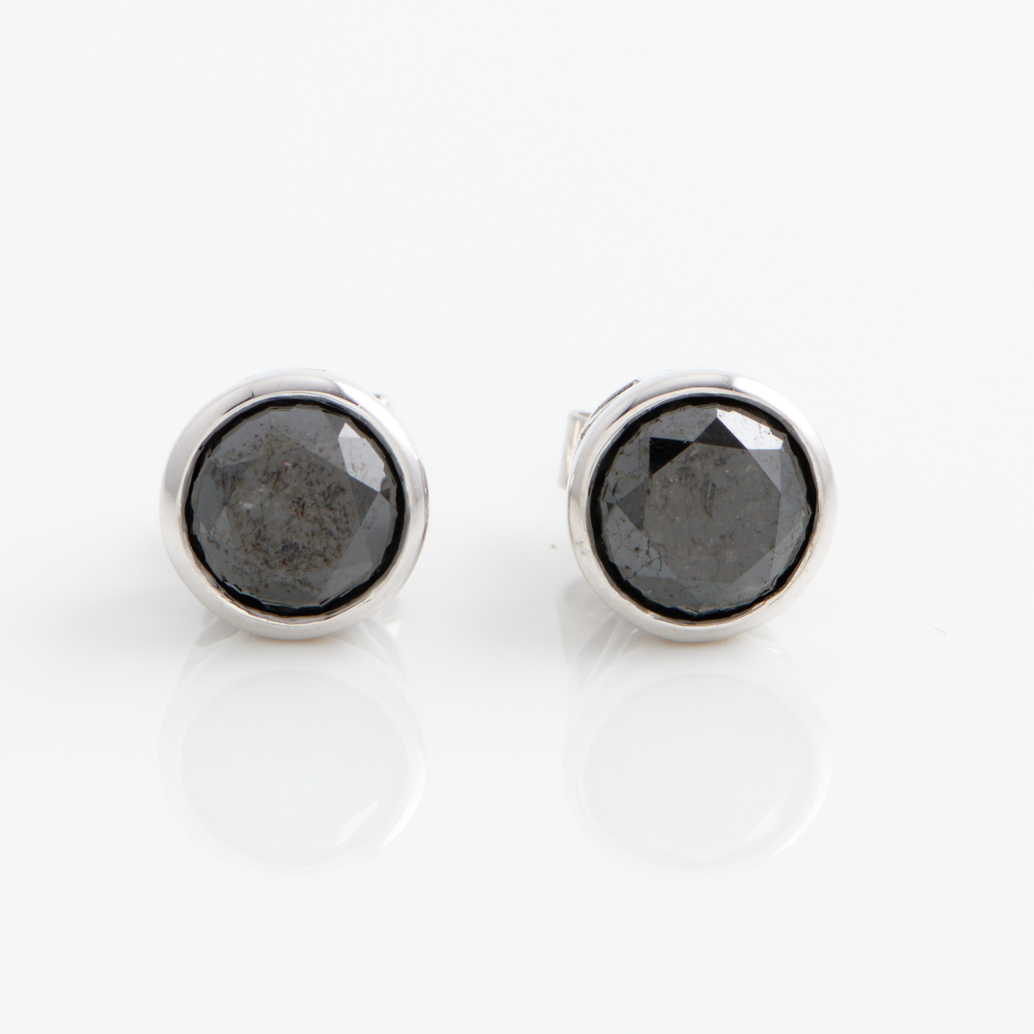 A PAIR OF BLACK DIAMOND EARRINGS IN 14CT WHITE GOLD, TO POST AND BUTTERFLY FITTINGS, THE DIAMOND TOTALLING 3.25CT, 2.5GMS