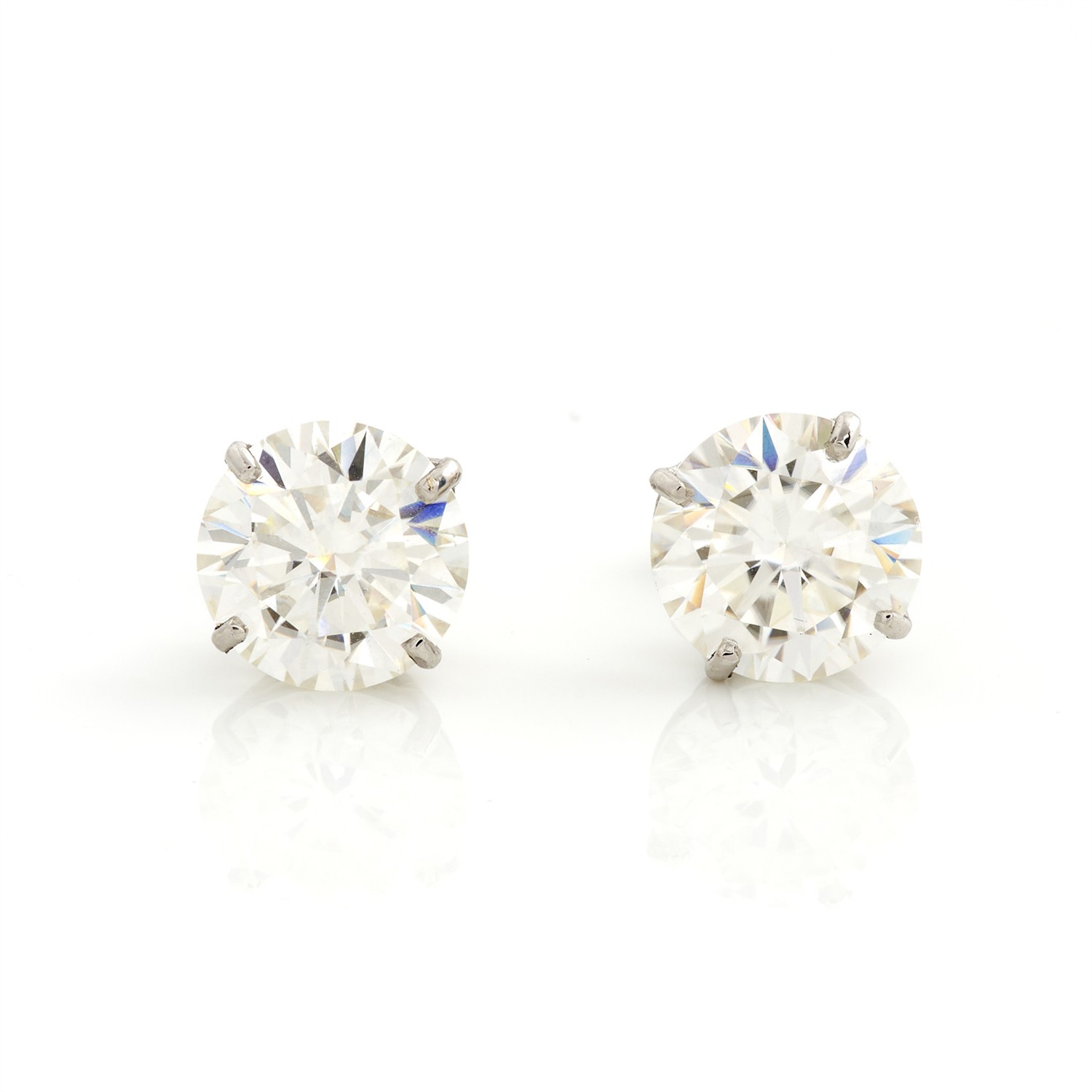 A PAIR OF MOISSANITE EARRINGS IN 18CT WHITE GOLD TO POST AND BUTTERFLY FITTINGS, THE MOISSANITES TOTALLING 6.84CTS, 10MM X 10MM