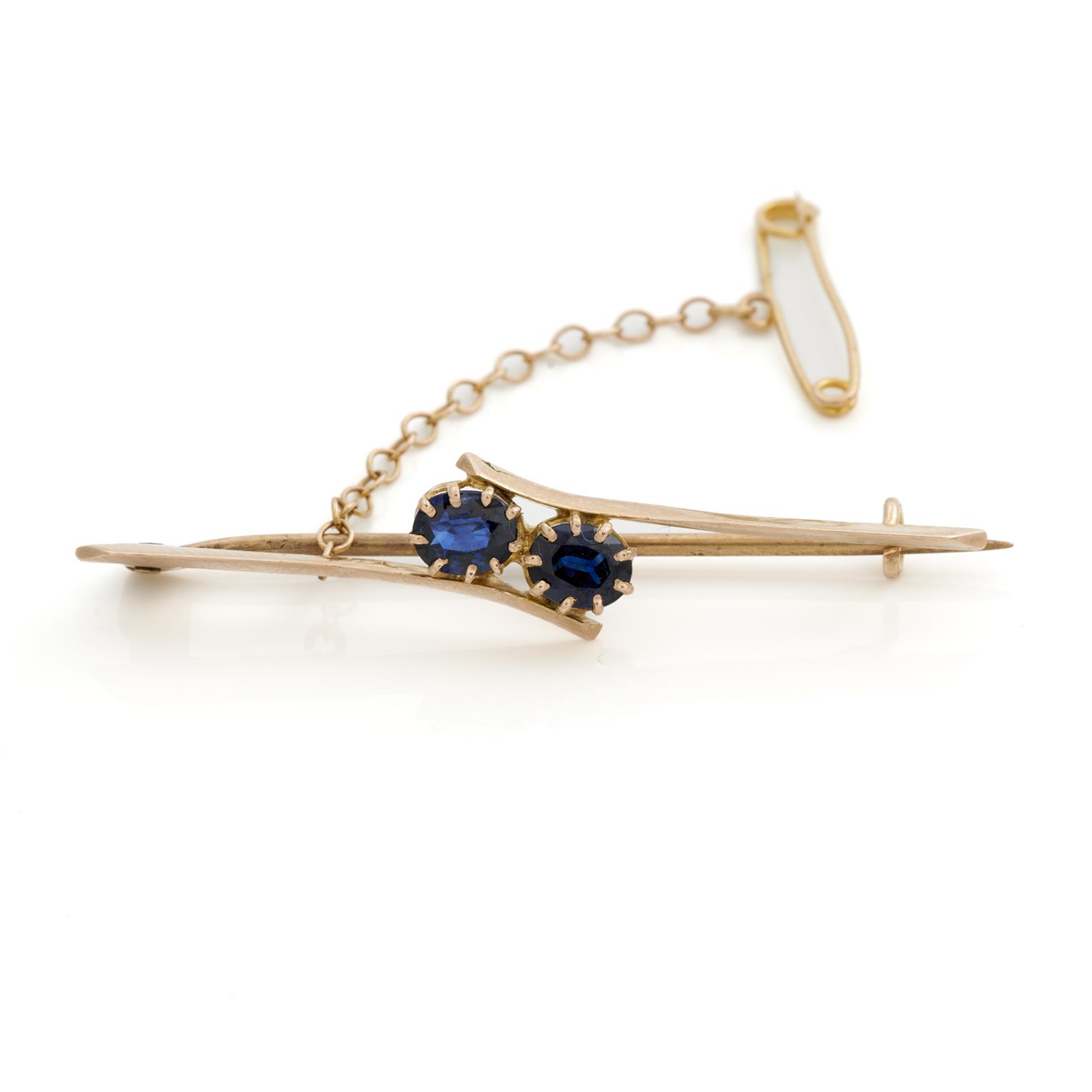 JOSEPH LAWRENCE OF MELBOURNE, AN ANTIQUE SAPPHIRE BROOCH IN 9CT GOLD, 45MM, 2.3GMS