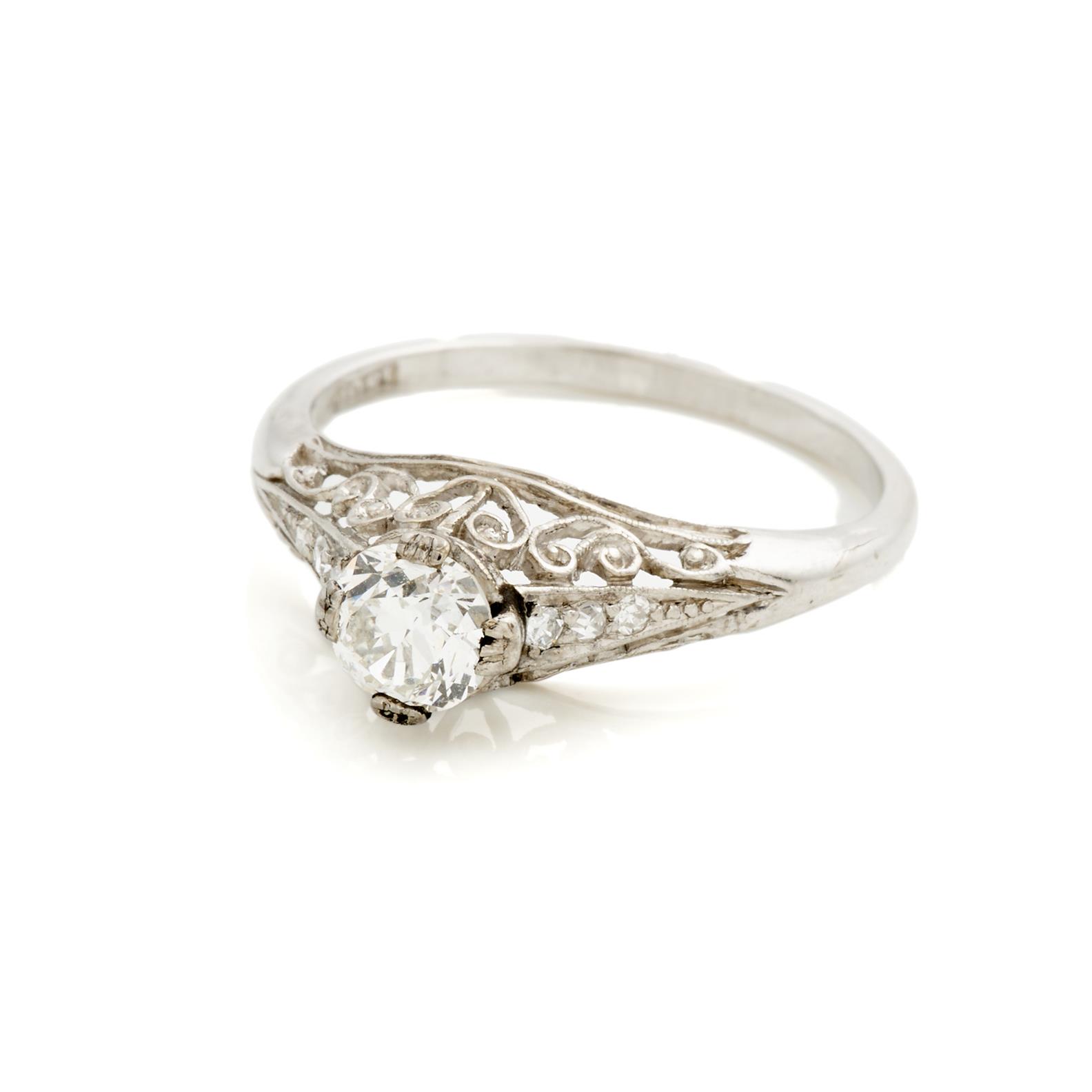 AN ANTIQUE DIAMOND RING IN 18CT WHITE GOLD AND PLATINUM, THE OLD CUT DIAMOND WEIGHING 0.57CTS, SIZE N, 1.8GMS