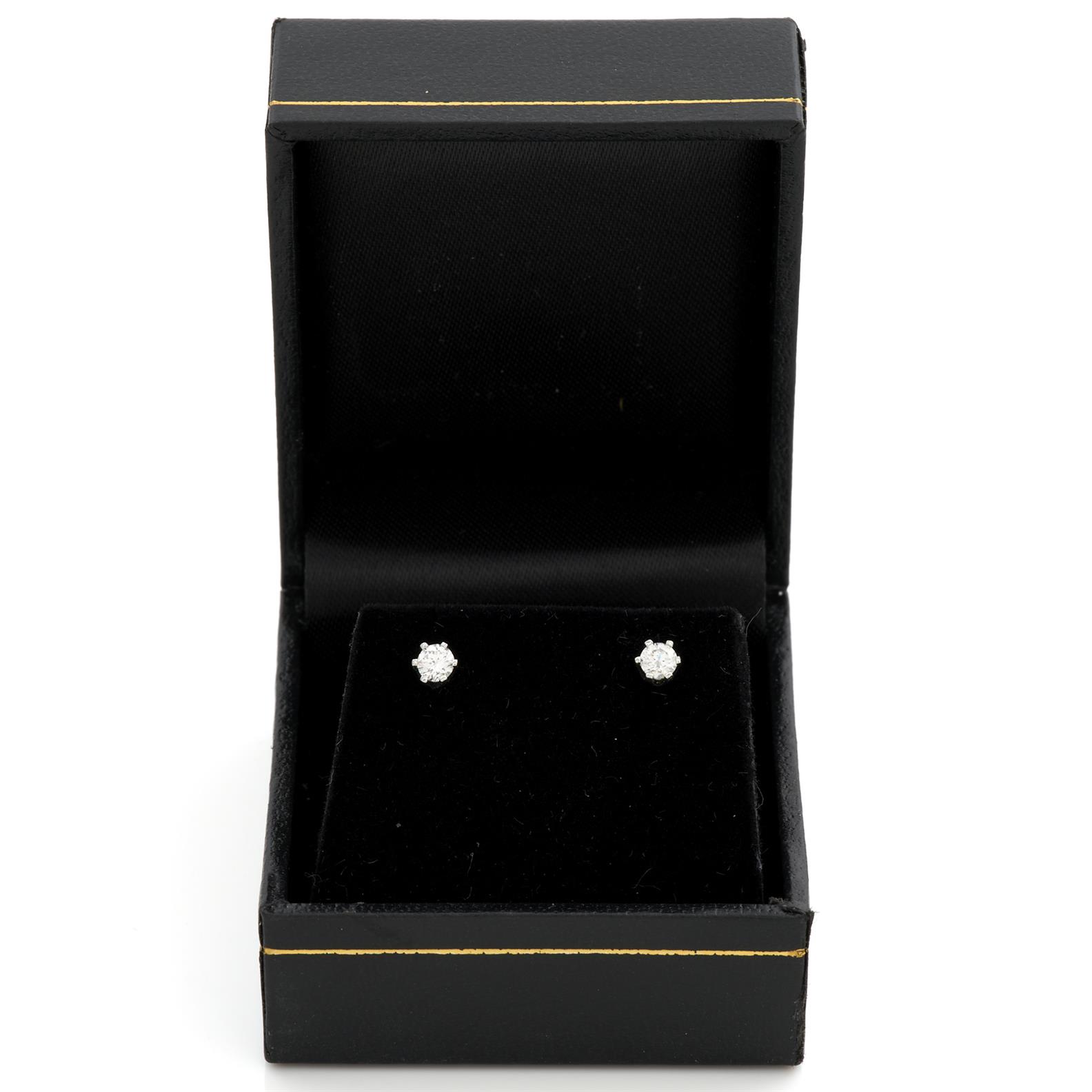 A PAIR OF DIAMOND EARRINGS IN 9CT WHITE GOLD, THE DIAMONDS TOTALLING 0.26CTS (F-G, VS), TO POST AND BUTTERFLY FITTINGS, ACCOMPANIED BY A BOX