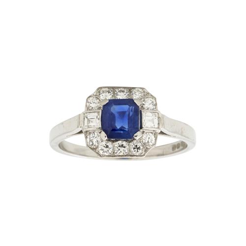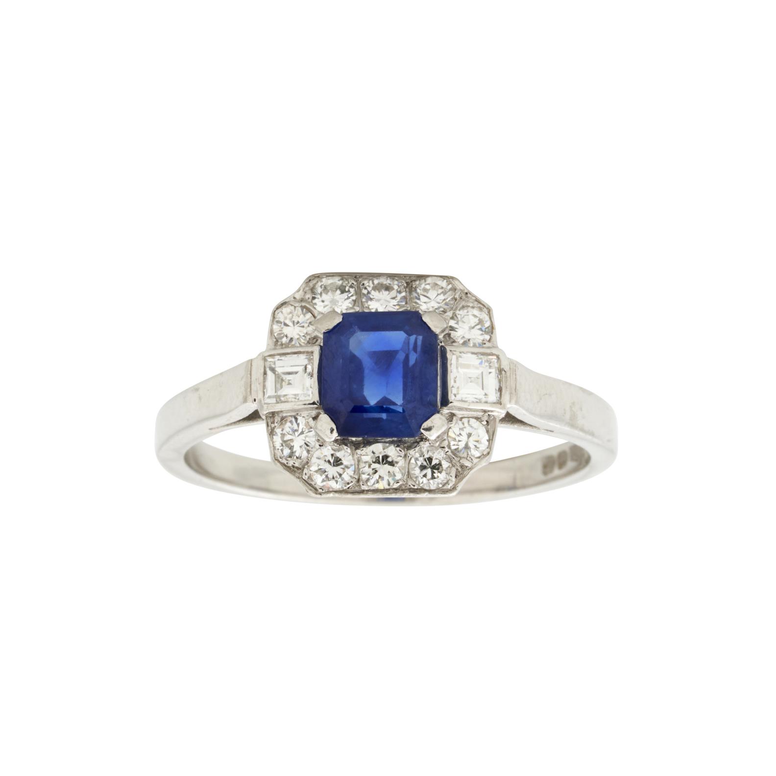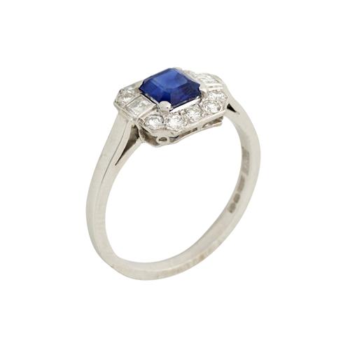A SAPPHIRE & DIAMOND RING IN PLATINUM, SIZE O, 4.5GMS