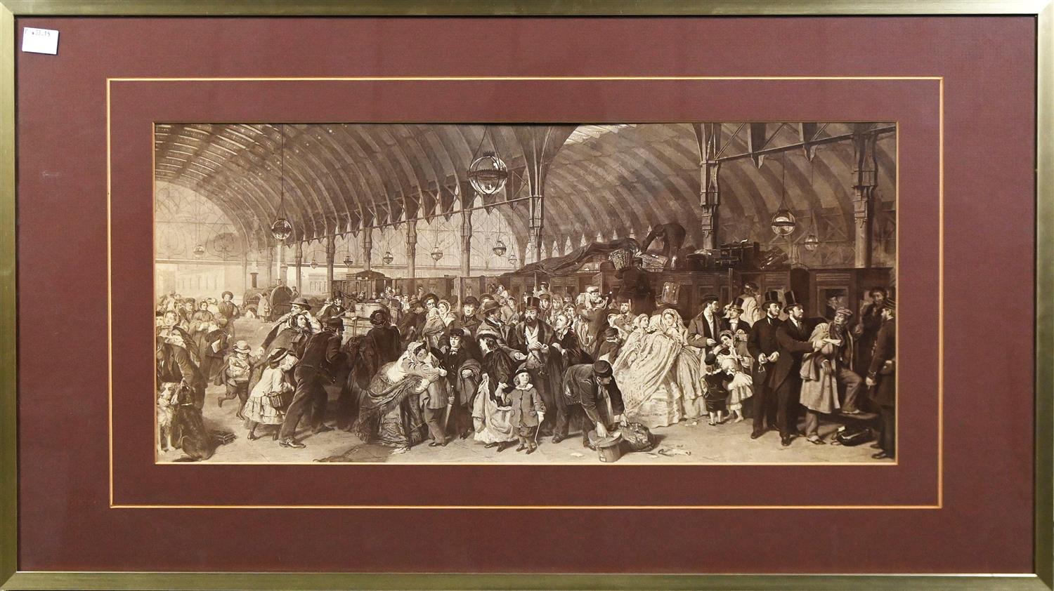 A REPRODUCTION PRINT OF A 19TH CENTURY TRAIN SCENE,