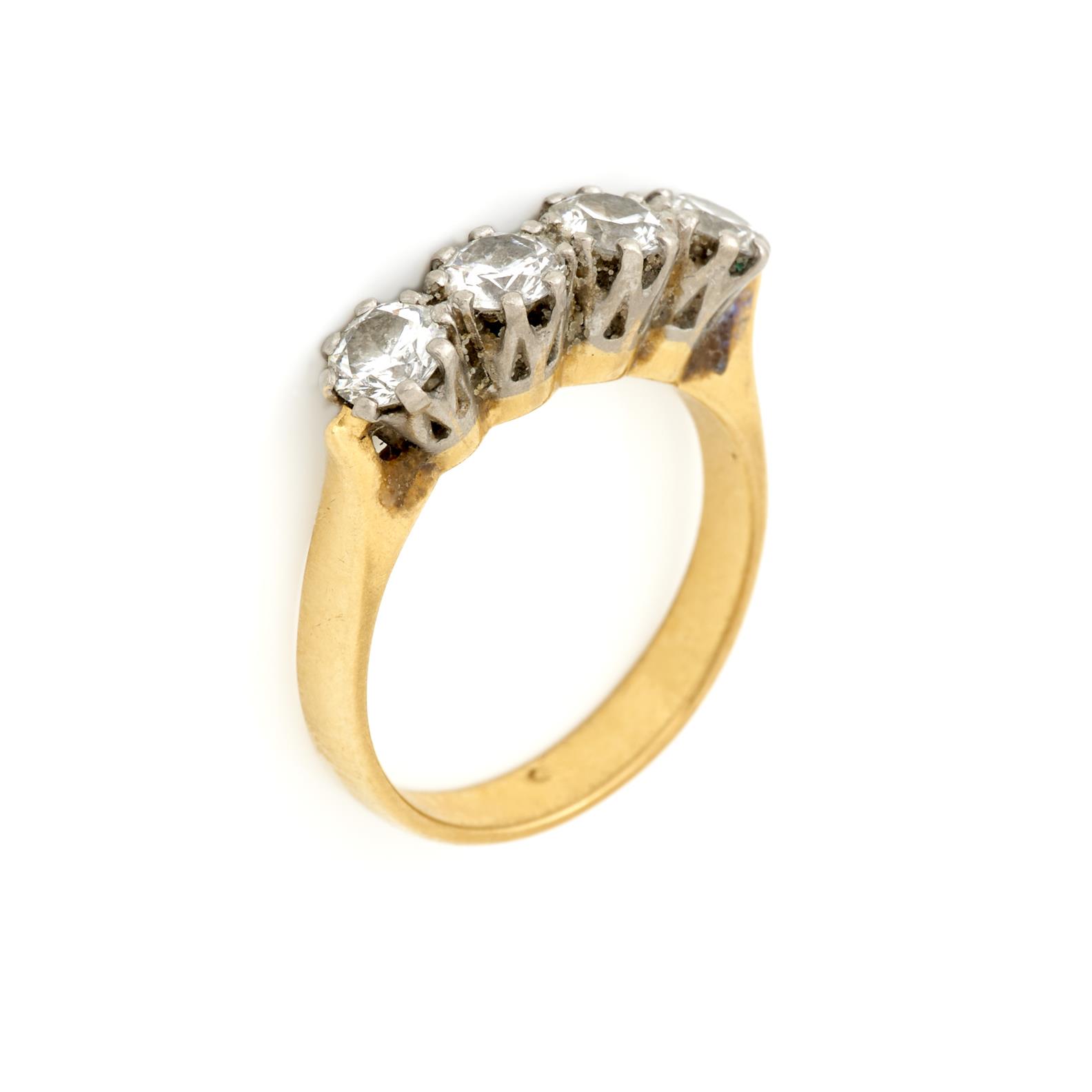 A DIAMOND RING IN 18CT GOLD, THE BRILLIANT CUT DIAMONDS TOTALLING APPROXIMATELY 0.90CTS, SIZE K 1/2, 4.2GMS