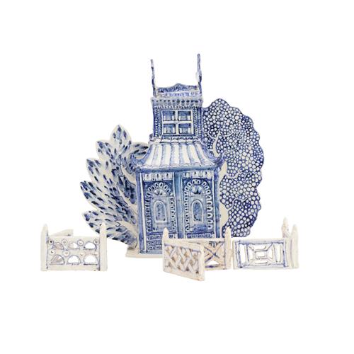 No visible indications of cracks or repairs. Significant crazing has occurred to the glazed exterior. One smaller chip is present to one portion of the fence, and there is a variation in glaze application on the larger house structure which has resulted in a slight change in colour.