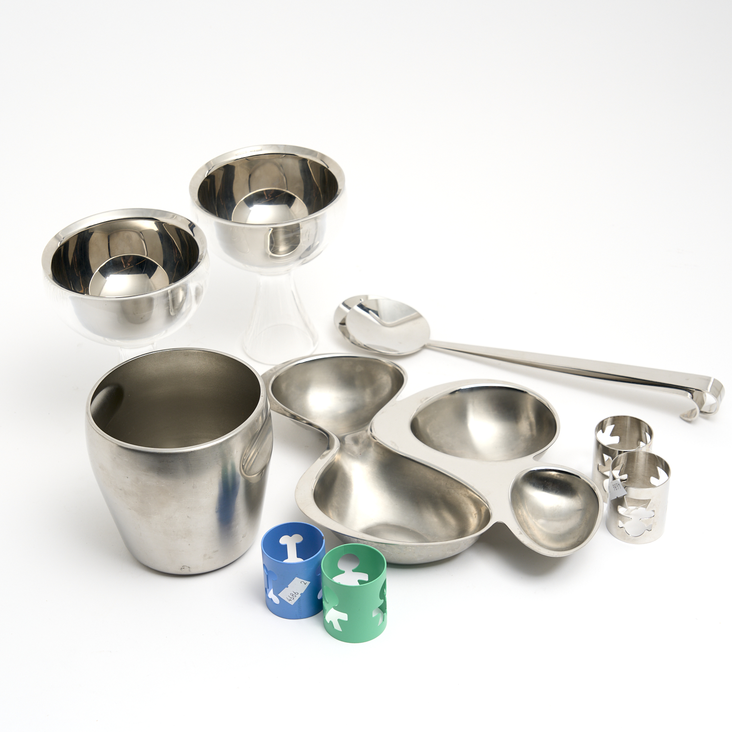 A GROUP OF ALESSI ITEMS BY RON ARAD, STEFANO GIOVANNONI, GUIDO VENTURINI, LUIGI MASSON, MIRIAM MIRRI, PHILLIPPE STARCK AND CARLO MAZZERI, MADE IN ITALY H.15.5CM (TALLEST)