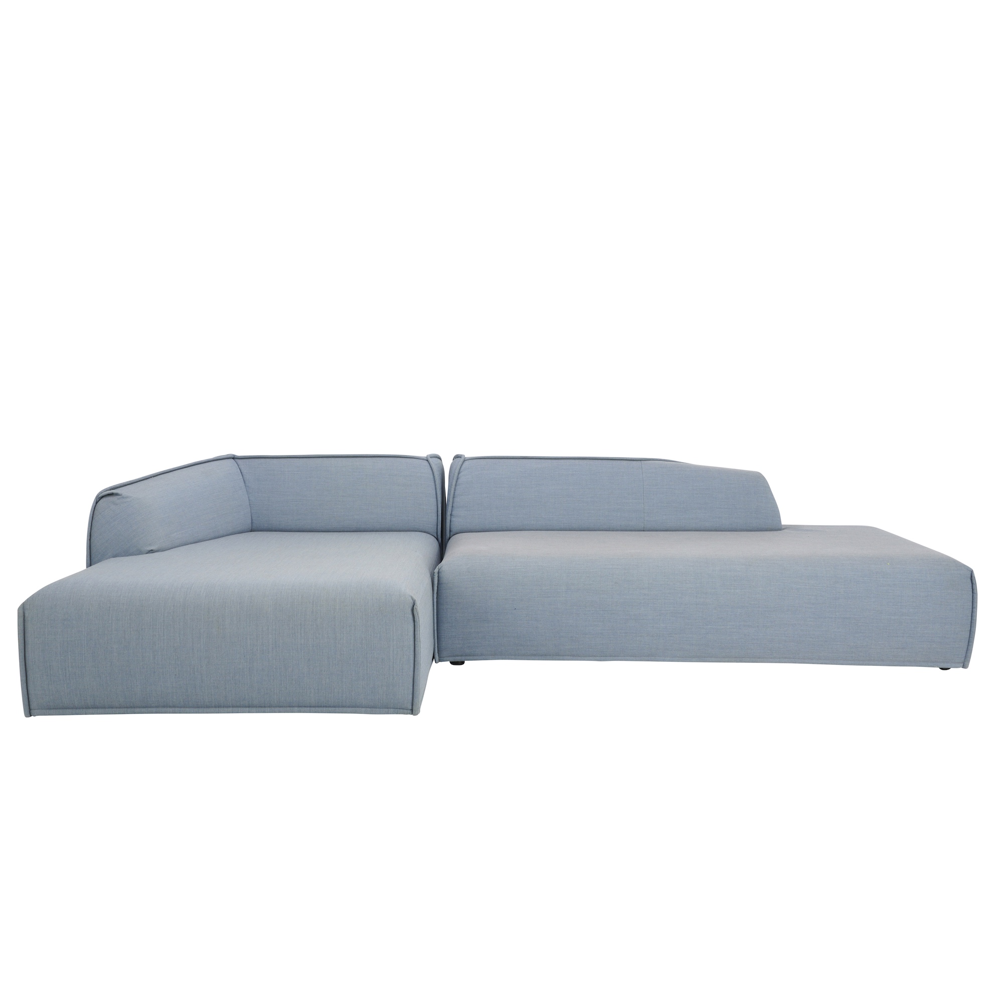 Two modules upholstered in steel blue textile with raised stitch detail.