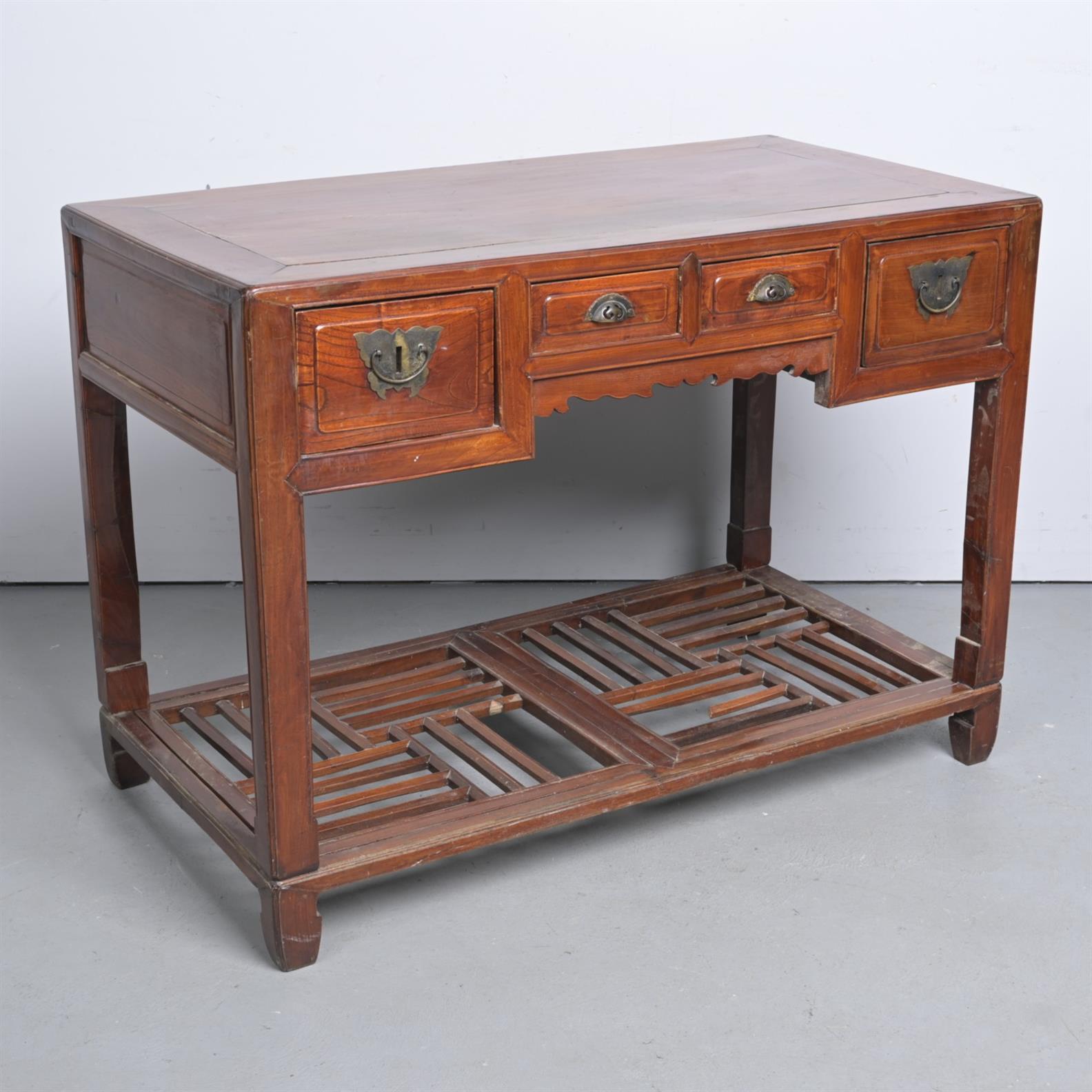 A CHINESE ELM SIDE OR WRITING TABLE (A/F) (85H X 117W X 62D CM)