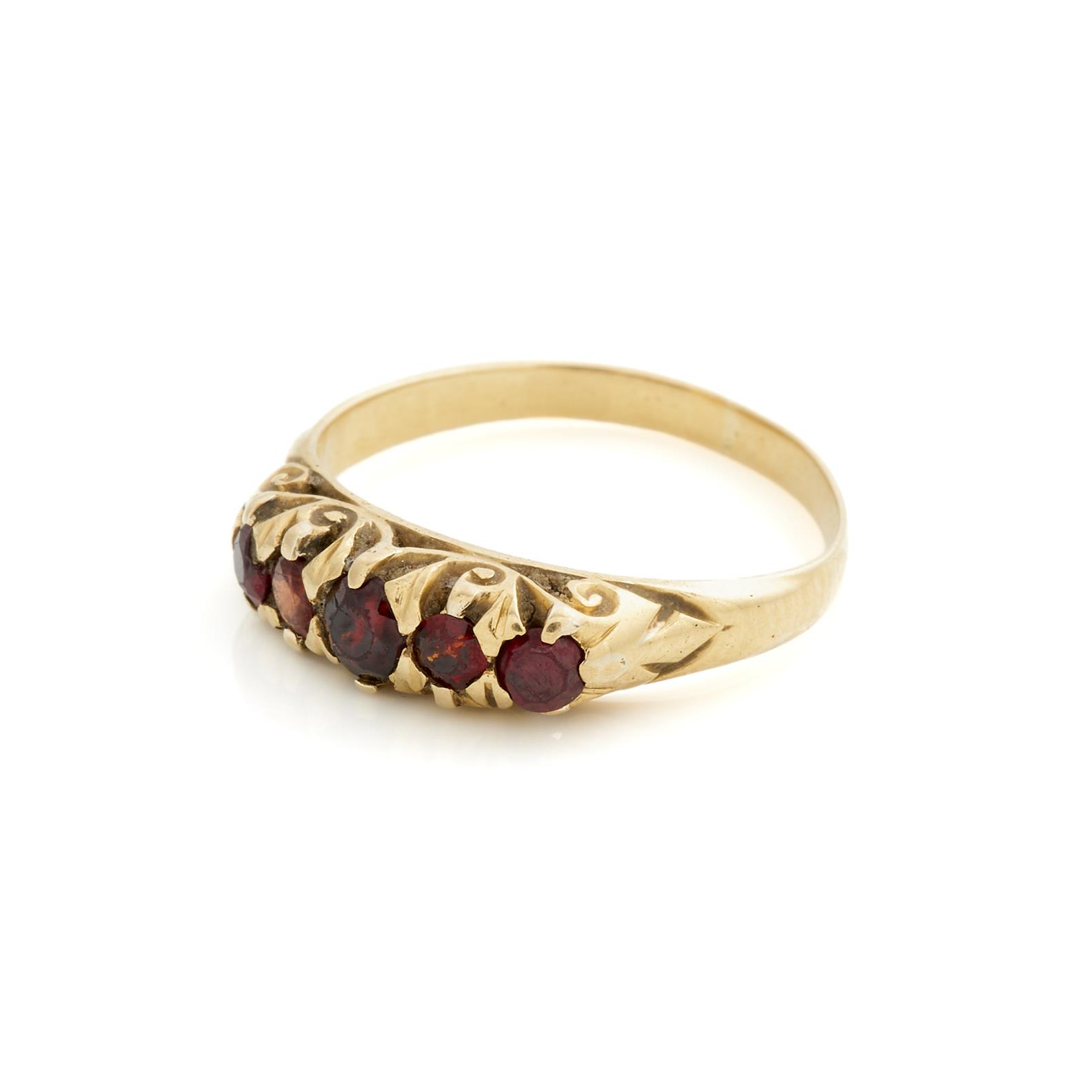 A GARNET RING IN 15CT GOLD, SIZE N, 2.8GMS