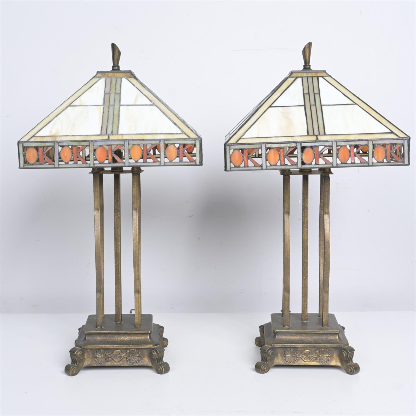 A PAIR OF TABLE LAMPS IN THE MANNER OF FRANK LLOYD WRIGHT (71H X 35W X 35D CM)