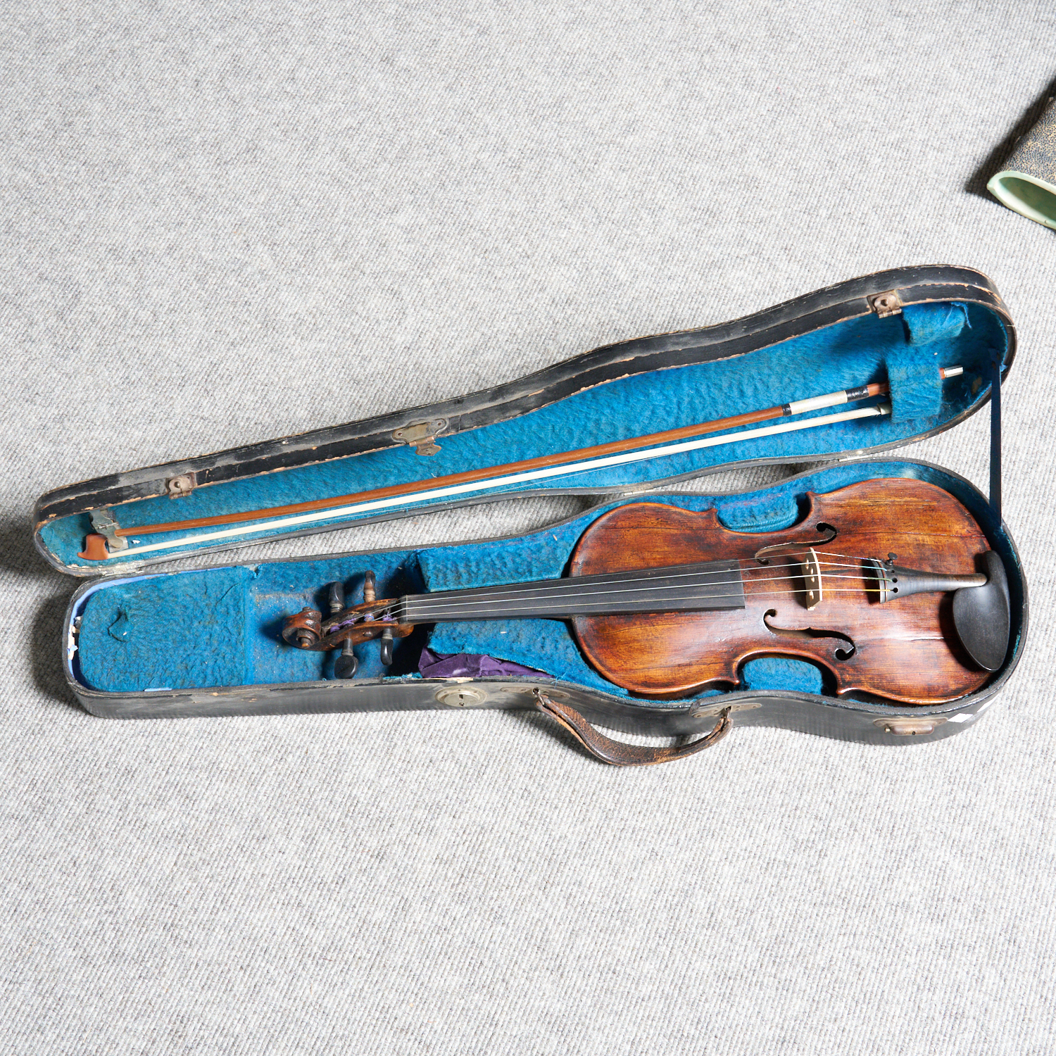 A GERMAN VIOLIN, AFTER NICHOLOUS AMATUS, WITH BOW AND HARDCASE L.60CM