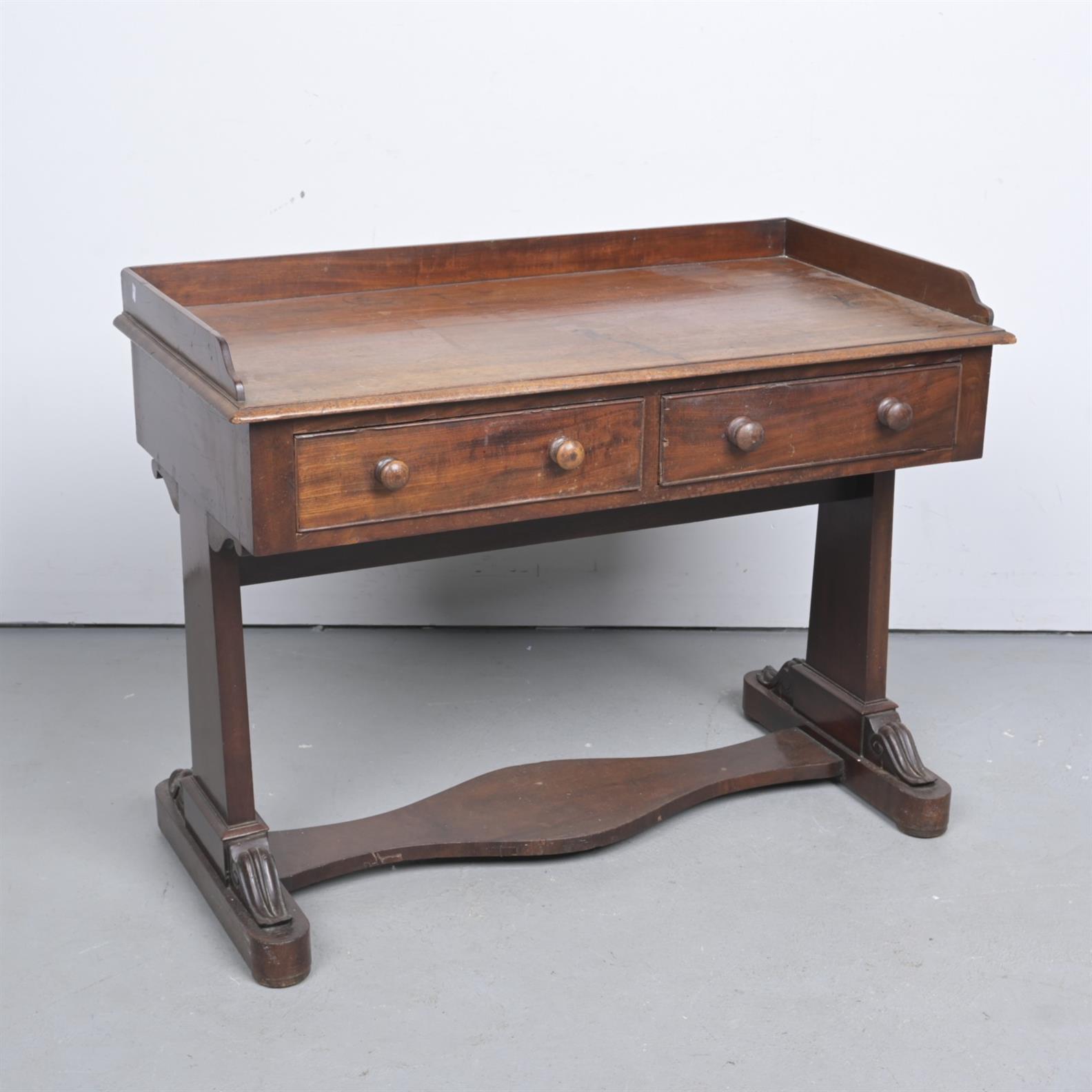 AN EARLY VICTORIAN MAHOGANY SIDE TABLE (76H X 96W X 50D CM)
