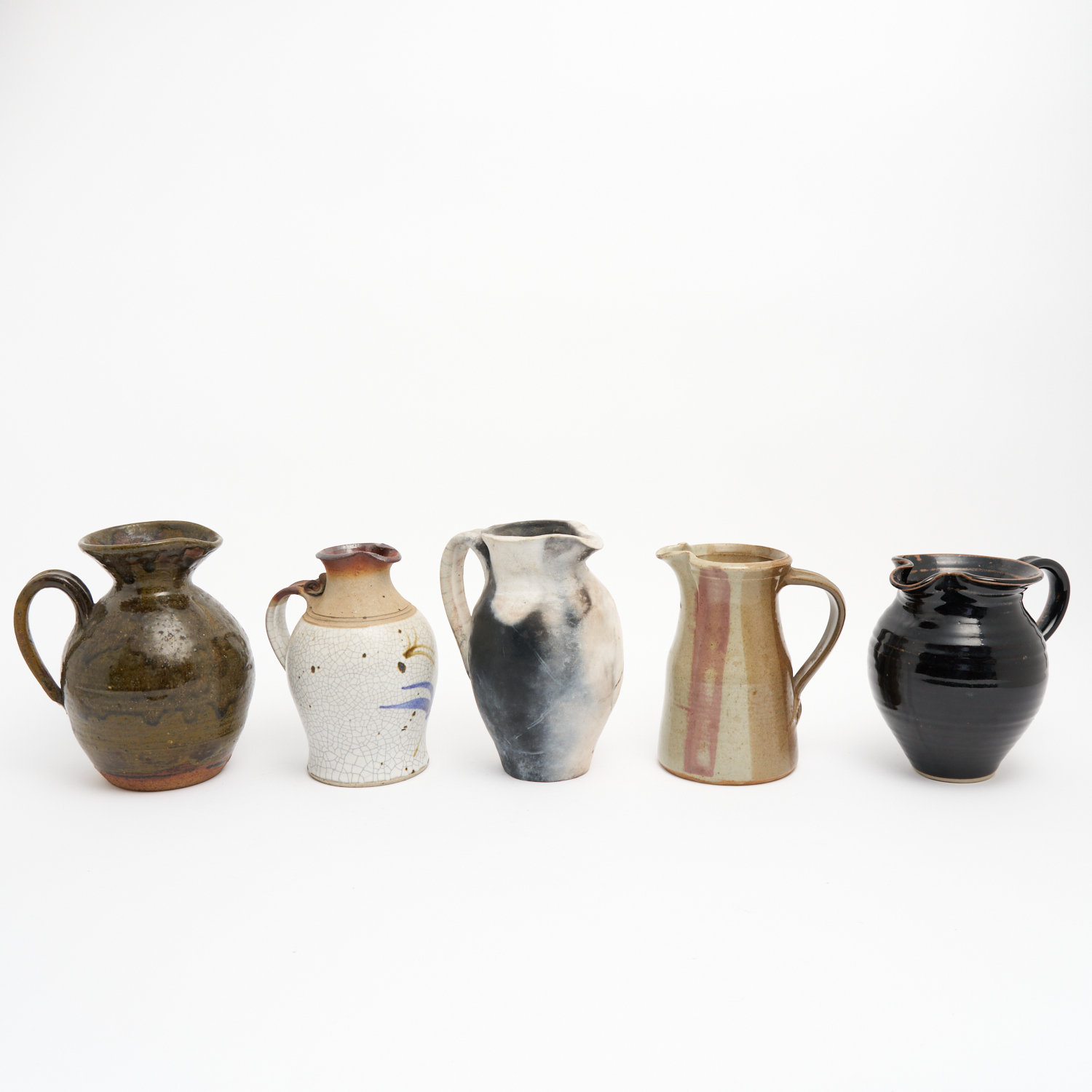 A COLLECTION OF FIVE VINTAGE AUSTRALIAN POTTERY JUGS H.21CM (TALLEST)
