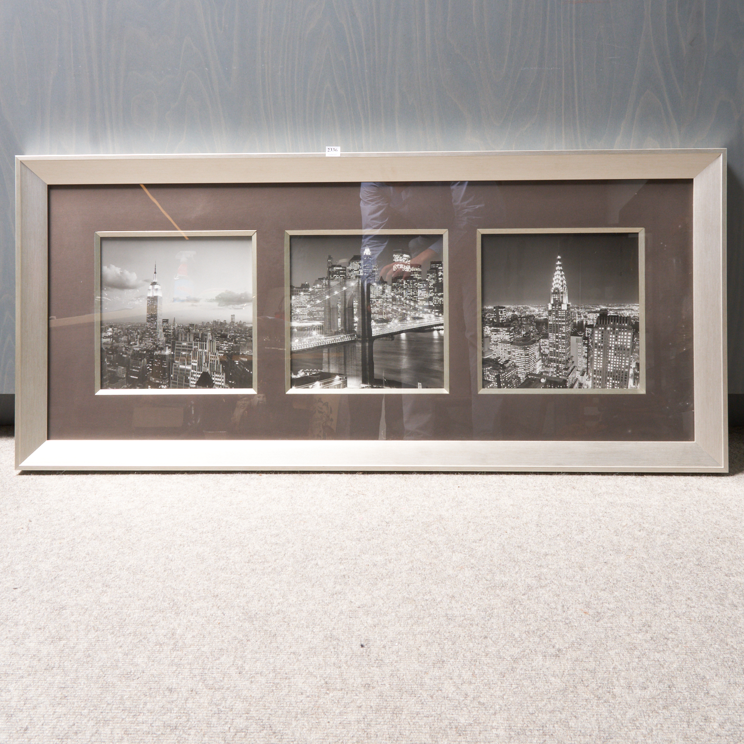A FRAMED SUITE OF THREE PHOTOGRAPHS, VIEWS OF NEW YORK 56 X 125.5CM