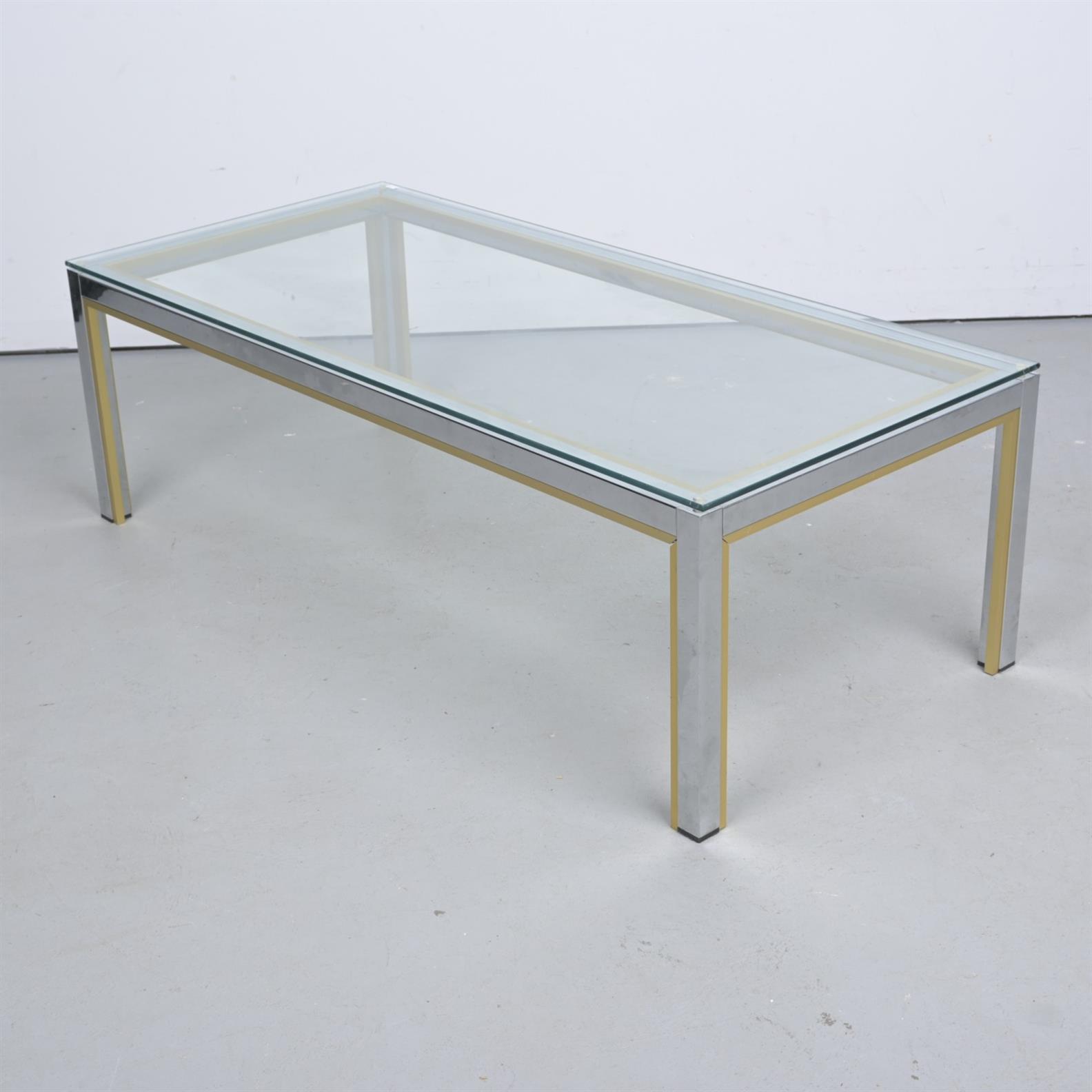 A 1980s CHROME AND GLAZED COFFEE TABLE (42H X 140W X 60D CM)