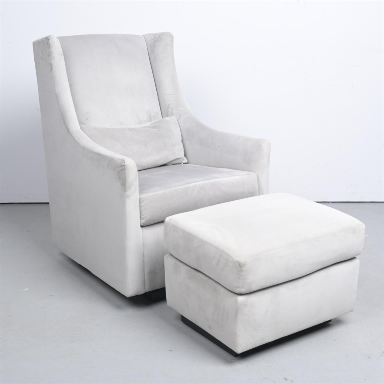 A WEST ELM GRAHAM GILDER CHAIR AND OTTOMAN (104CM X W64CM X 87CM D CHAIR) (THIS ITEM MUST BE REMOVED BY CARRIERS AT THE CUSTOMER'S EXPENSE. LEONARD JOEL STAFF CANNOT ASSIST CARRYING THIS ITEM)