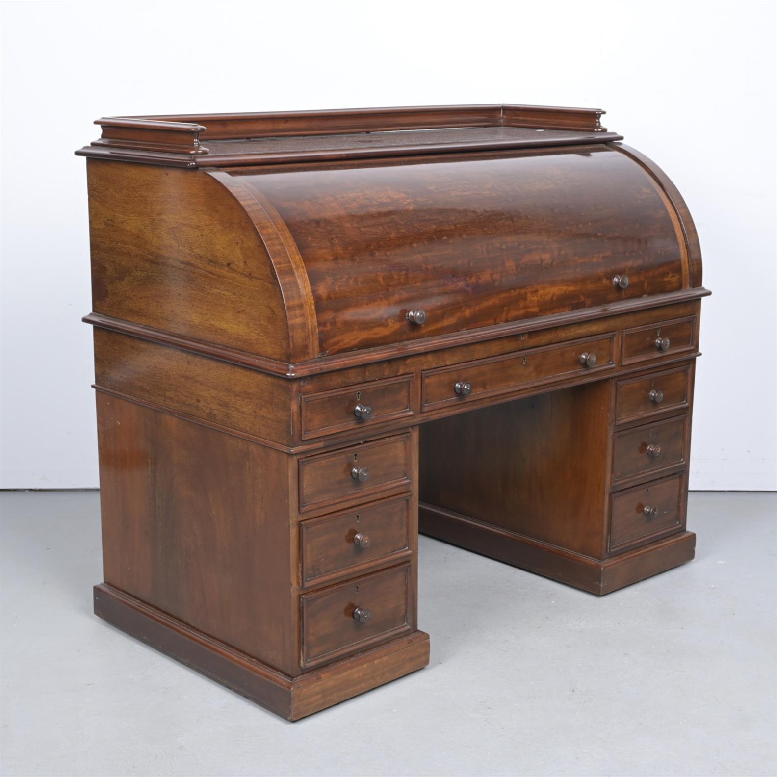A VICTORIAN MAHOGANY CYLINDER-TOP BUREAU (120CM H X 141CM W X 77CM D) (THIS ITEM MUST BE REMOVED BY CARRIERS AT THE CUSTOMER'S EXPENSE. LEONARD JOEL STAFF CANNOT ASSIST CARRYING THIS ITEM)