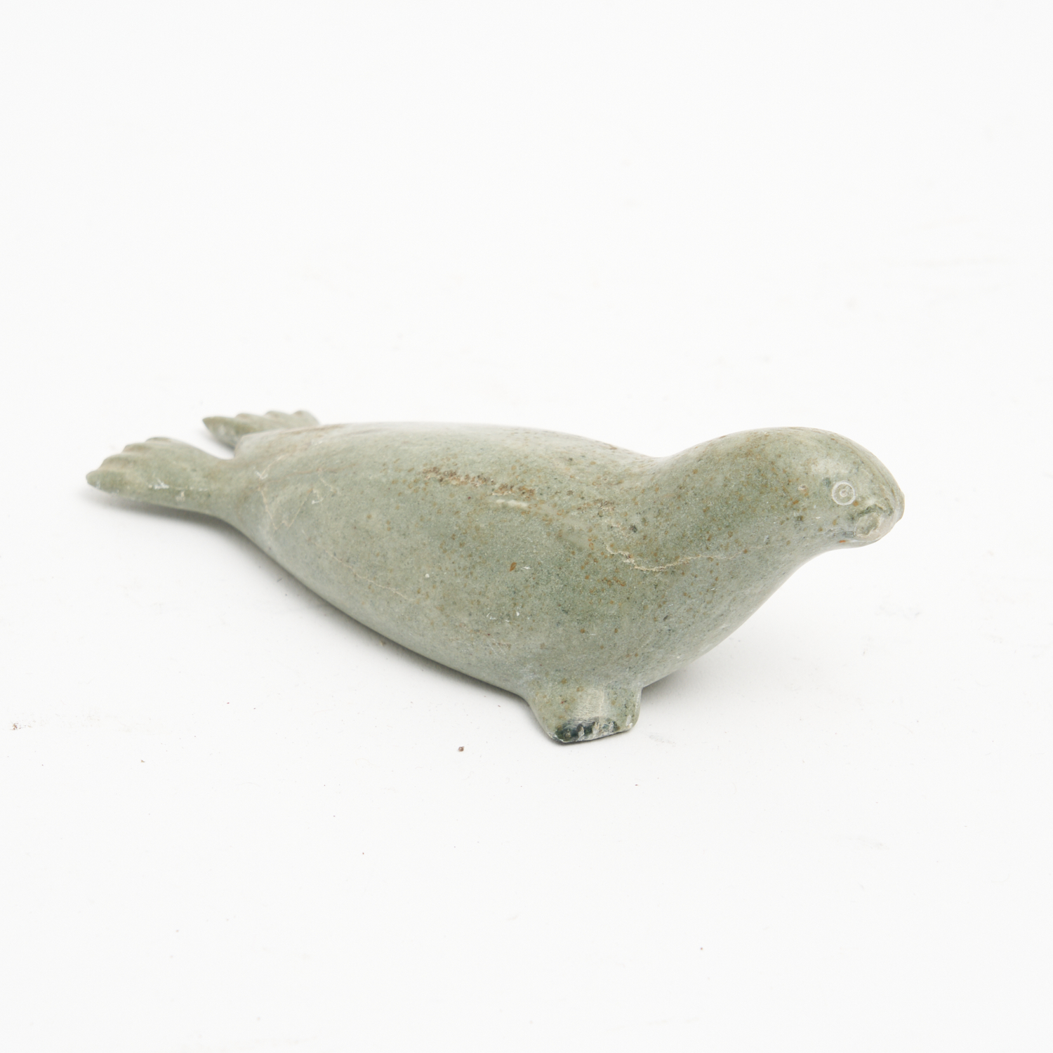 A SIGNED INUIT AMERICAN HARD STONE SEAL L.15CM