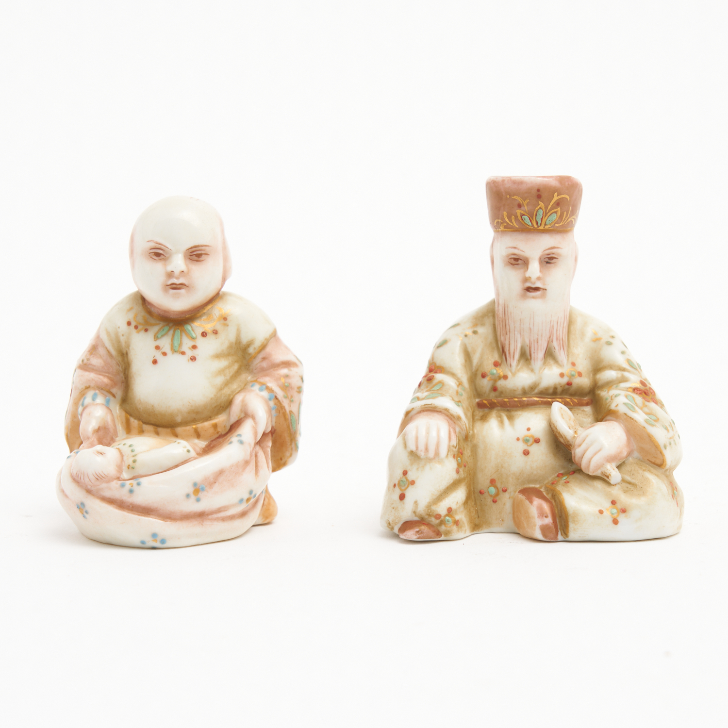A PAIR OF 19TH CENTURY EUROPEAN MINIATURE CHINESE FIGURES H.7CM (TALLEST)