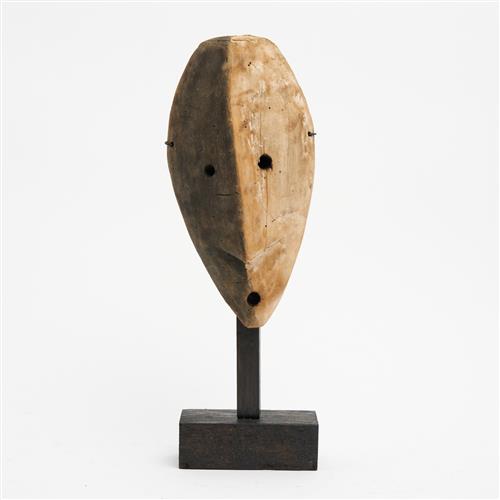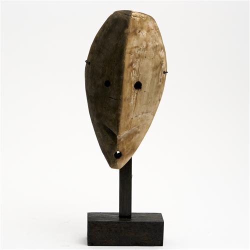A 20TH CENTURY LEGA MASK, REPUBLIC OF CONGO H.35CM (INCLUDING STAND)