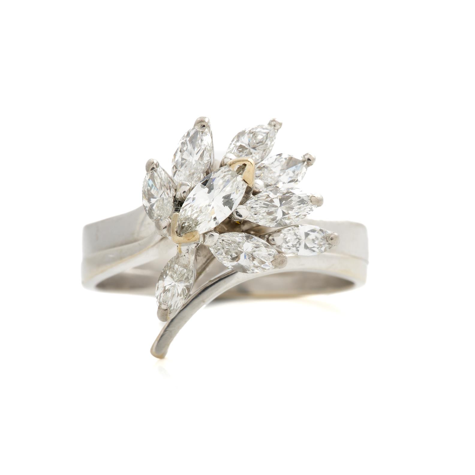 A MARQUISE DIAMOND CLUSTER RING IN 18CT WHITE GOLD, APPROXIMATE TOTAL DIAMOND WEIGHT 0.70CTS, RING SIZE N, WEIGHT 5.4GMS