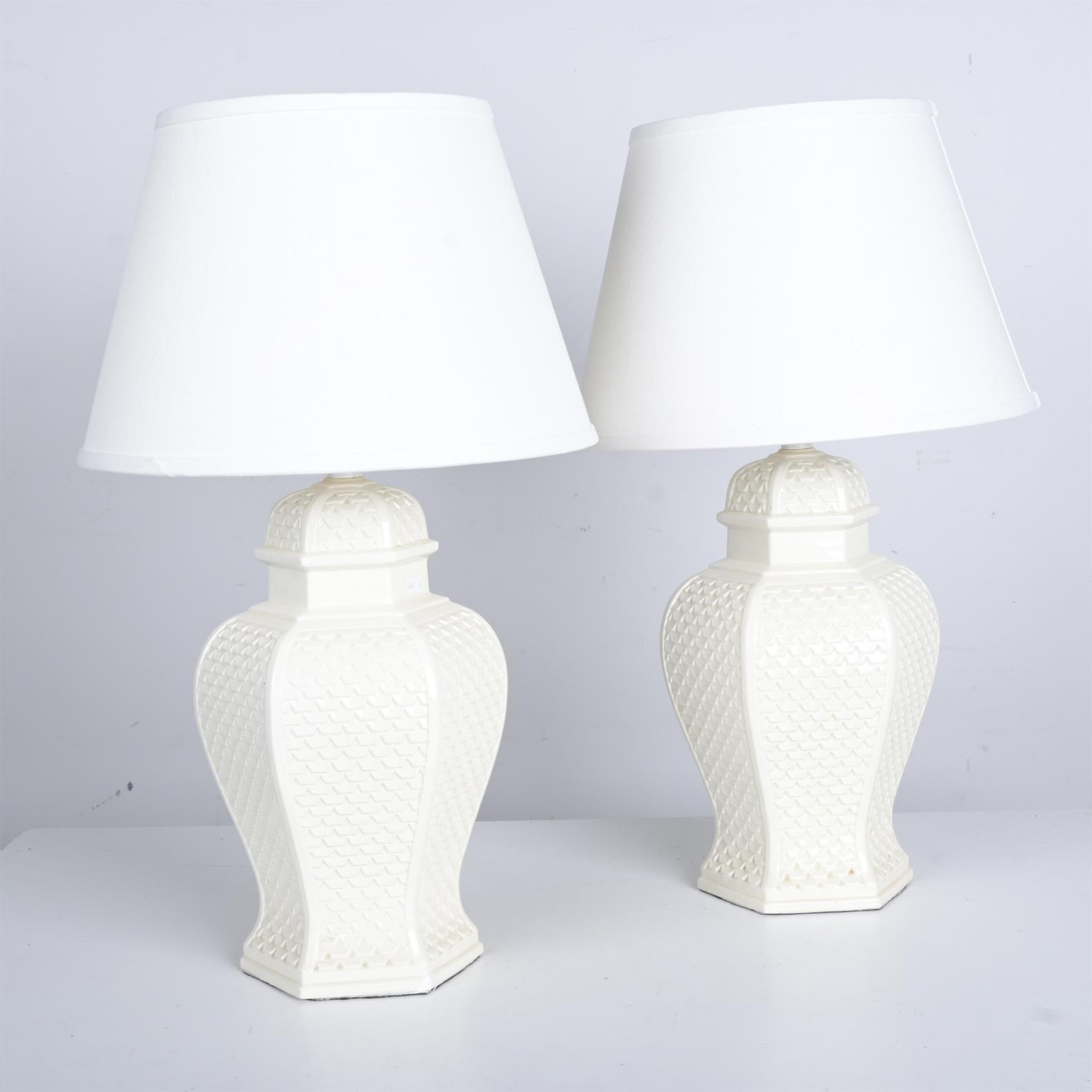 A PAIR OF ITALIAN CERAMIC TABLE LAMPS (70H X 42DIA CM)