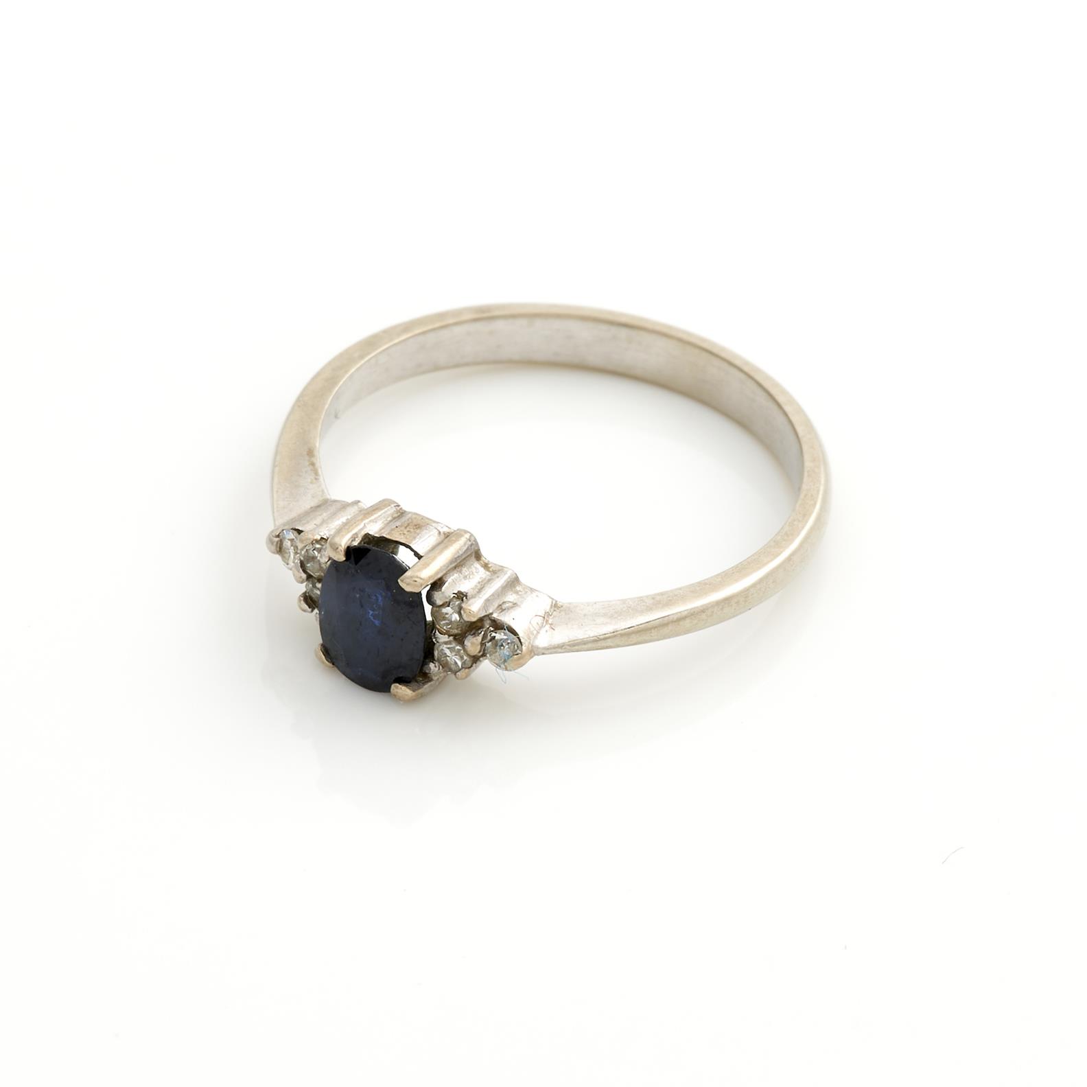 A SAPPHIRE AND DIAMOND RING IN 9CT WHITE GOLD, SIZE N, 2.0GMS