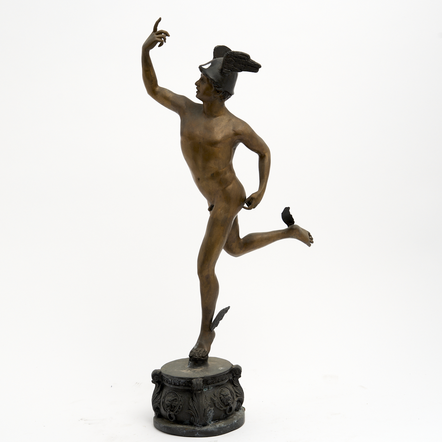 A CAST METAL FIGURE OF MERCURY H.57CM