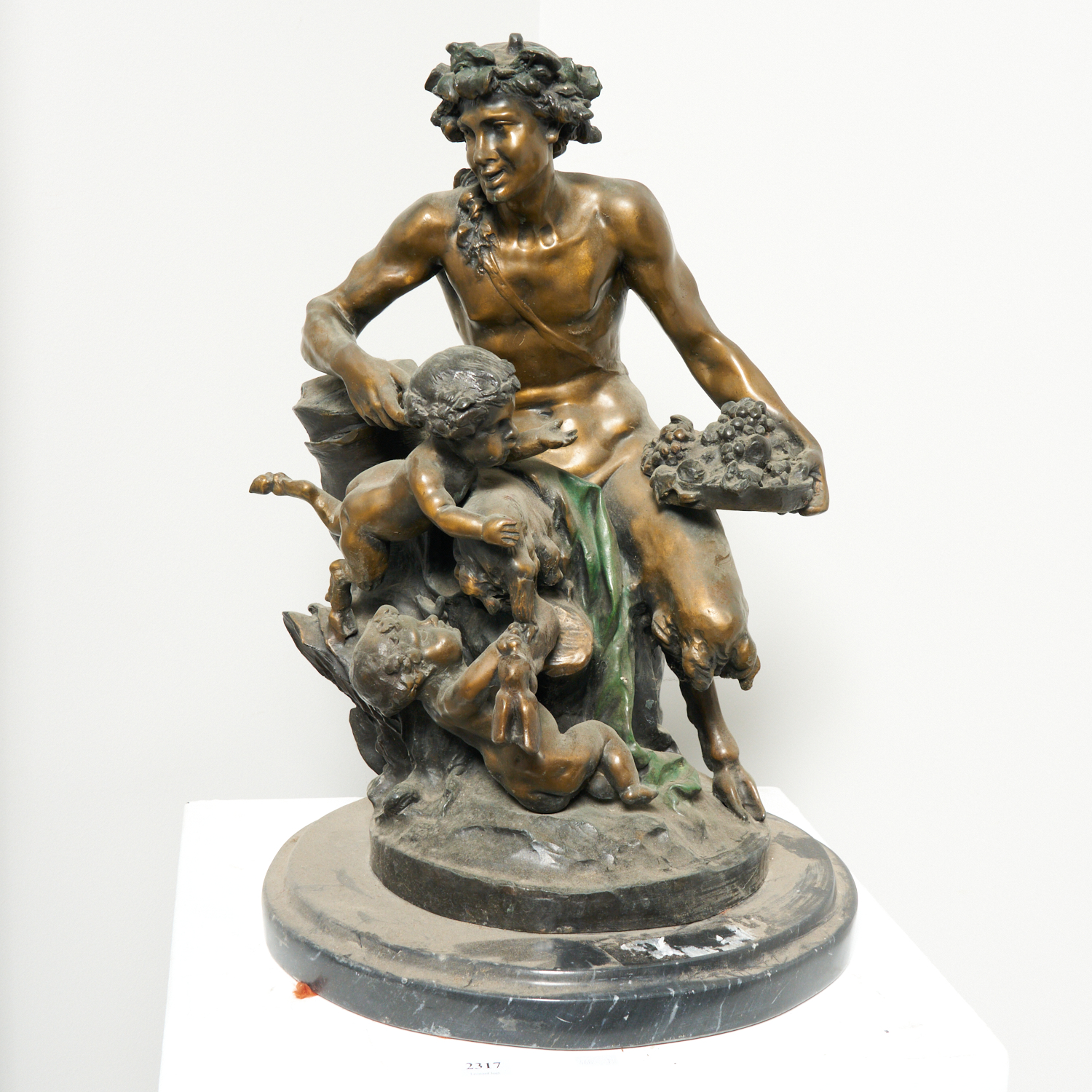 A BRONZE OF SATYR WITH CHILDREN, AFTER CLODION, MOUNTED ON MARBLE BASE