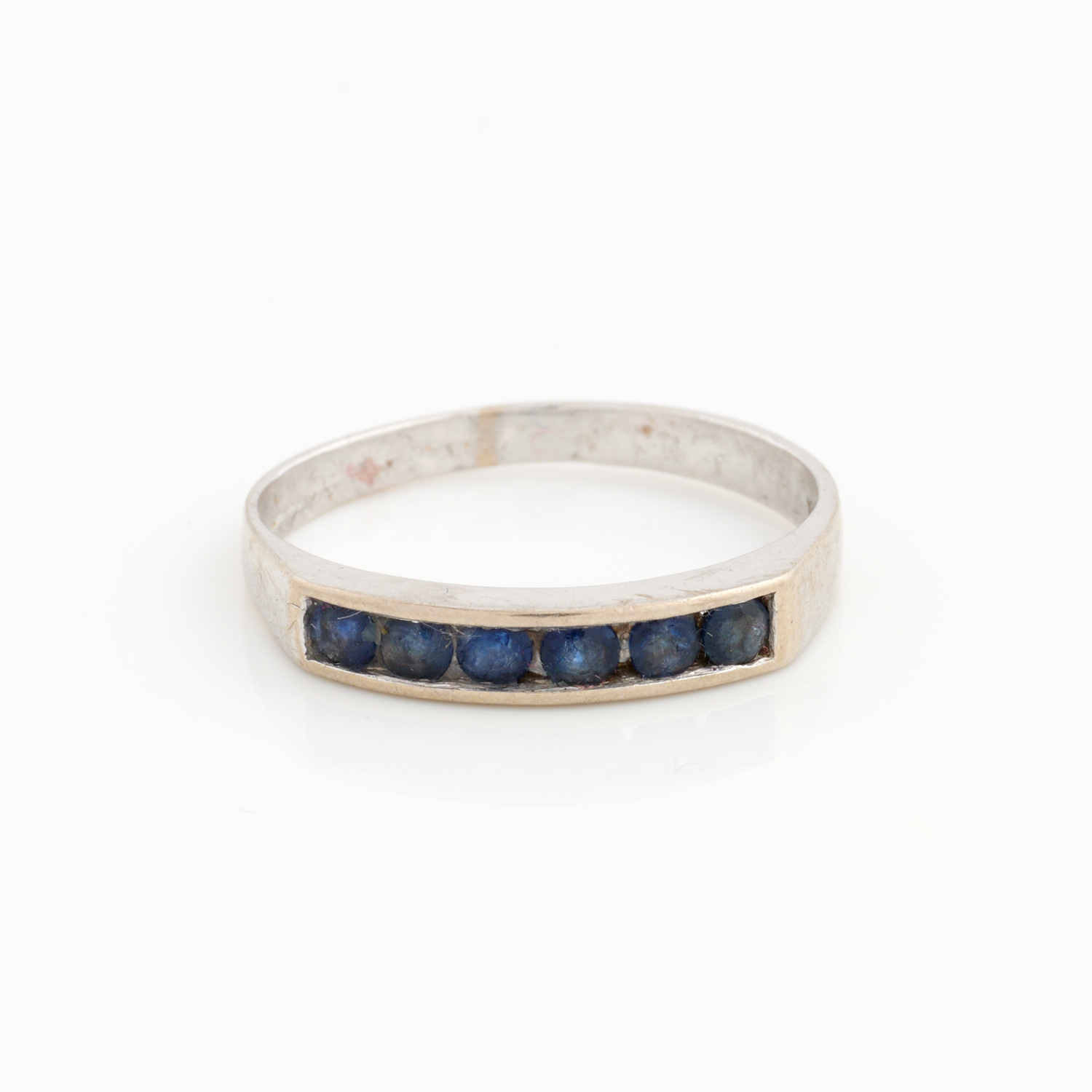 A SAPPHIRE BAND IN 18CT WHITE GOLD
